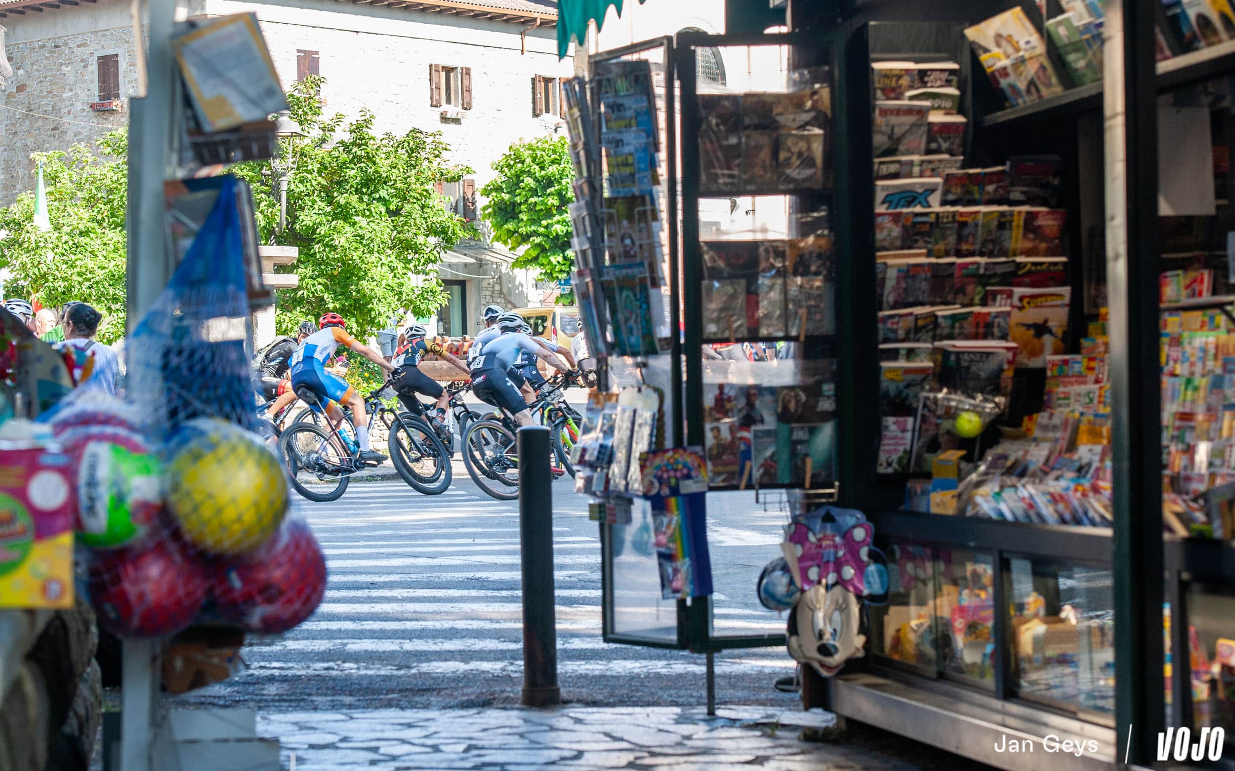 Kort na de top slaat het noodlot toe: lekke band. Met technische afdalingen in het vooruitzicht, zit de schrik er goed in om opnieuw lek te rijden. Het tempo lijdt eronder. Met een gemiddelde van 12,5 km/u – trager dan gehoopt, maar begrijpelijk gezien de aard van het terrein – rijd ik over de meet in Vidiciatico. Dit was geen eenvoudige start …