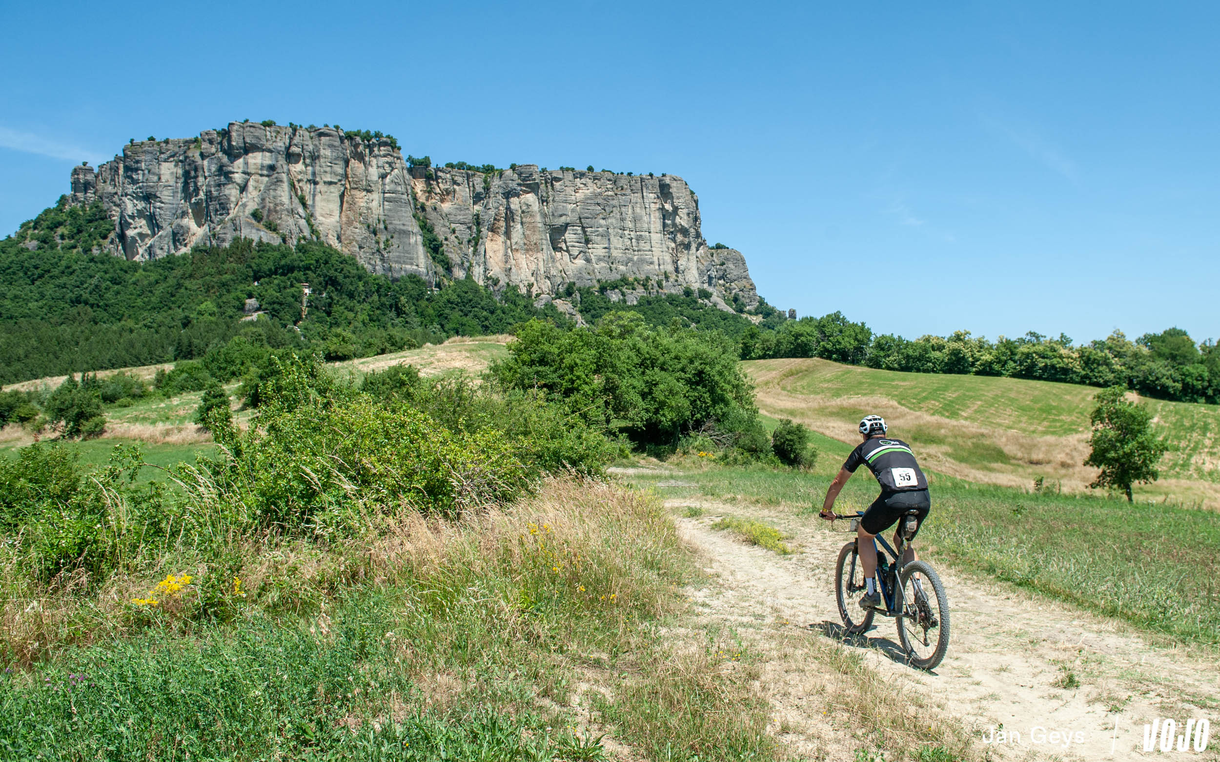 Het begin van de vierde rit (mijn achtste opeenvolgende als ik de Alpentour Trophy meetel) verloopt moeizaam. Mijn lichaam sputtert tegen, dus kies ik voor een behouden start. We rijden vandaag weer een stukje verder noordwaarts, naar misschien wel de meest iconische plek van de Appenninica MTB Stage Race: Castelnovo ne’ Monti en de opvallende Bismantova-rots.