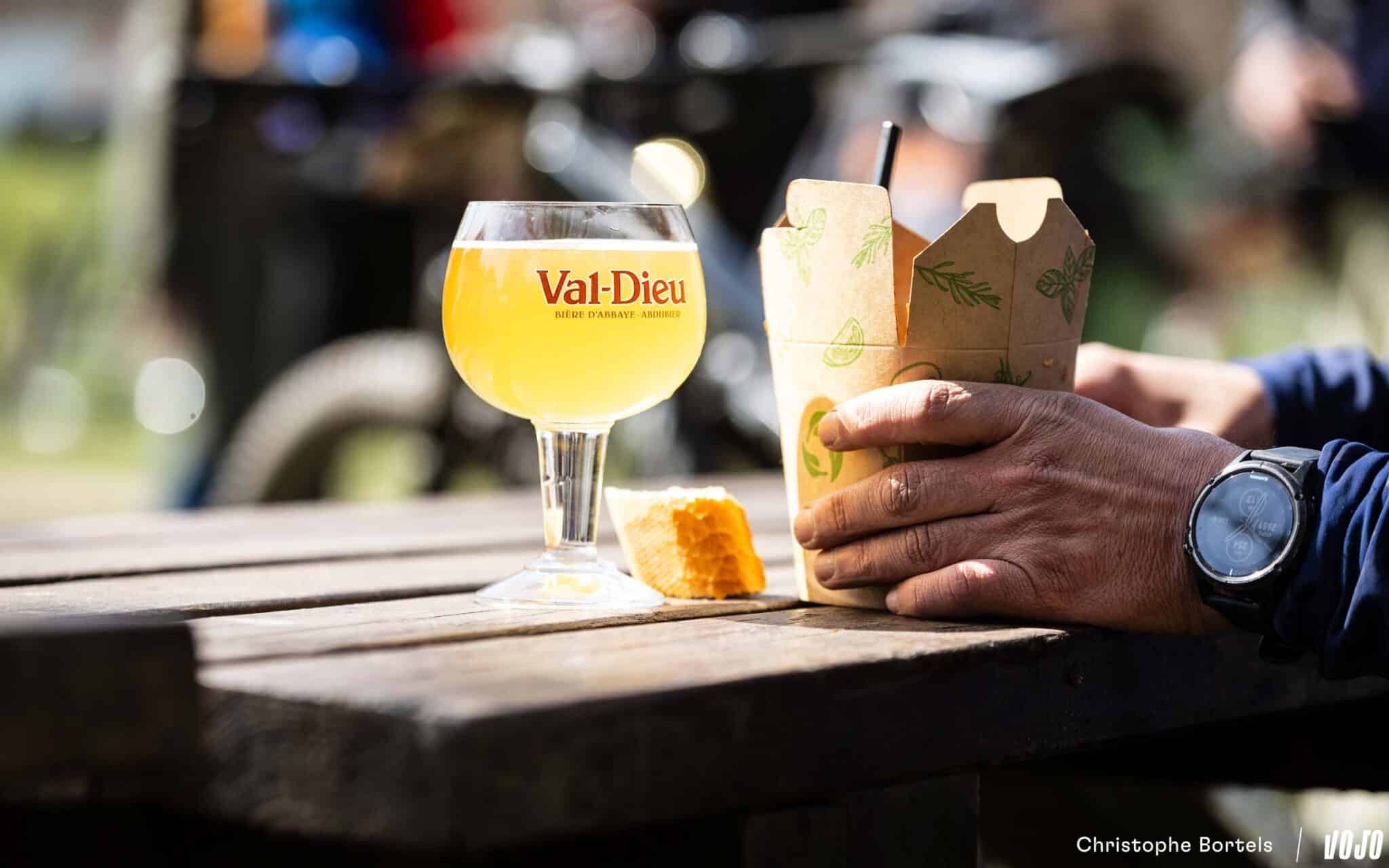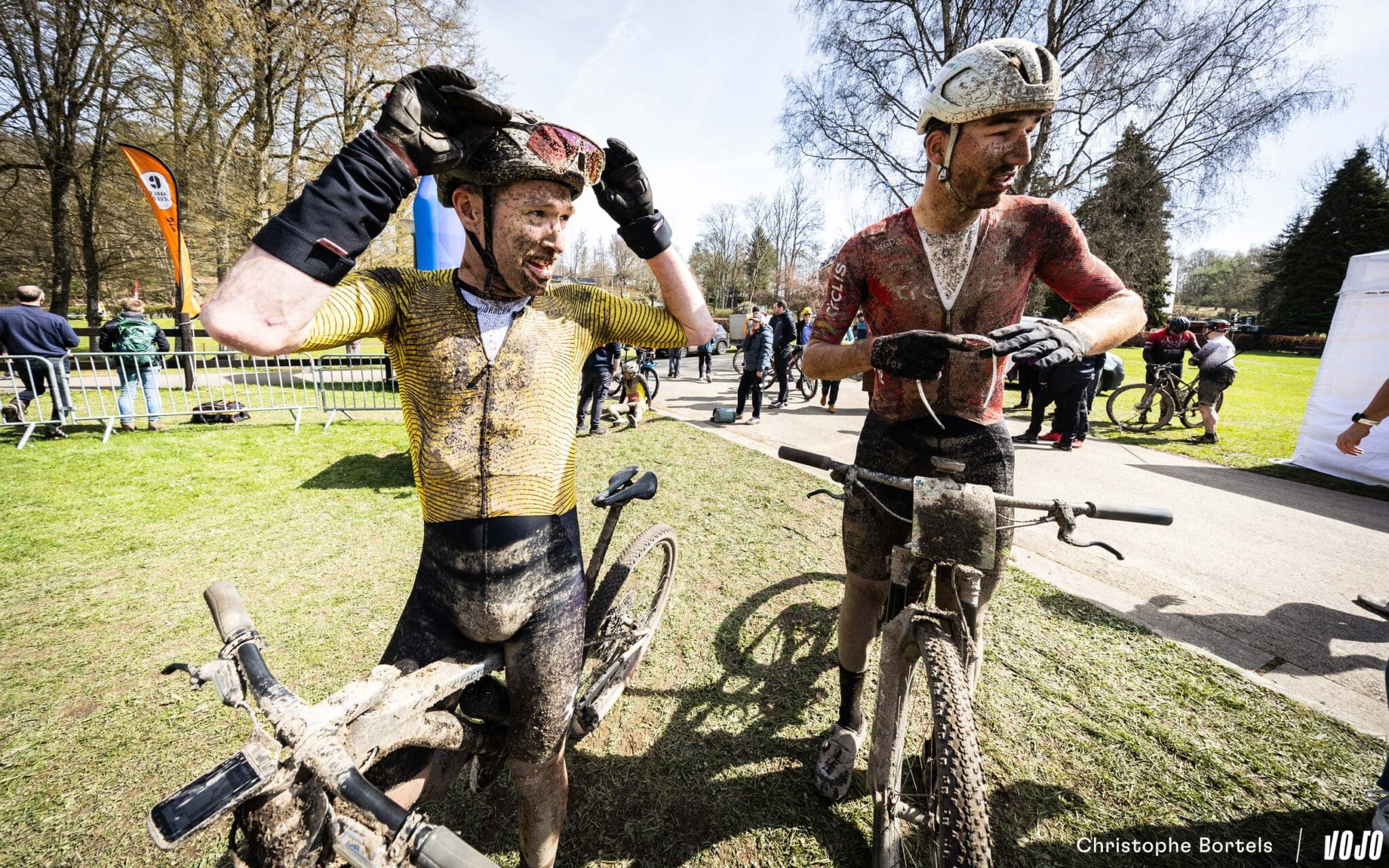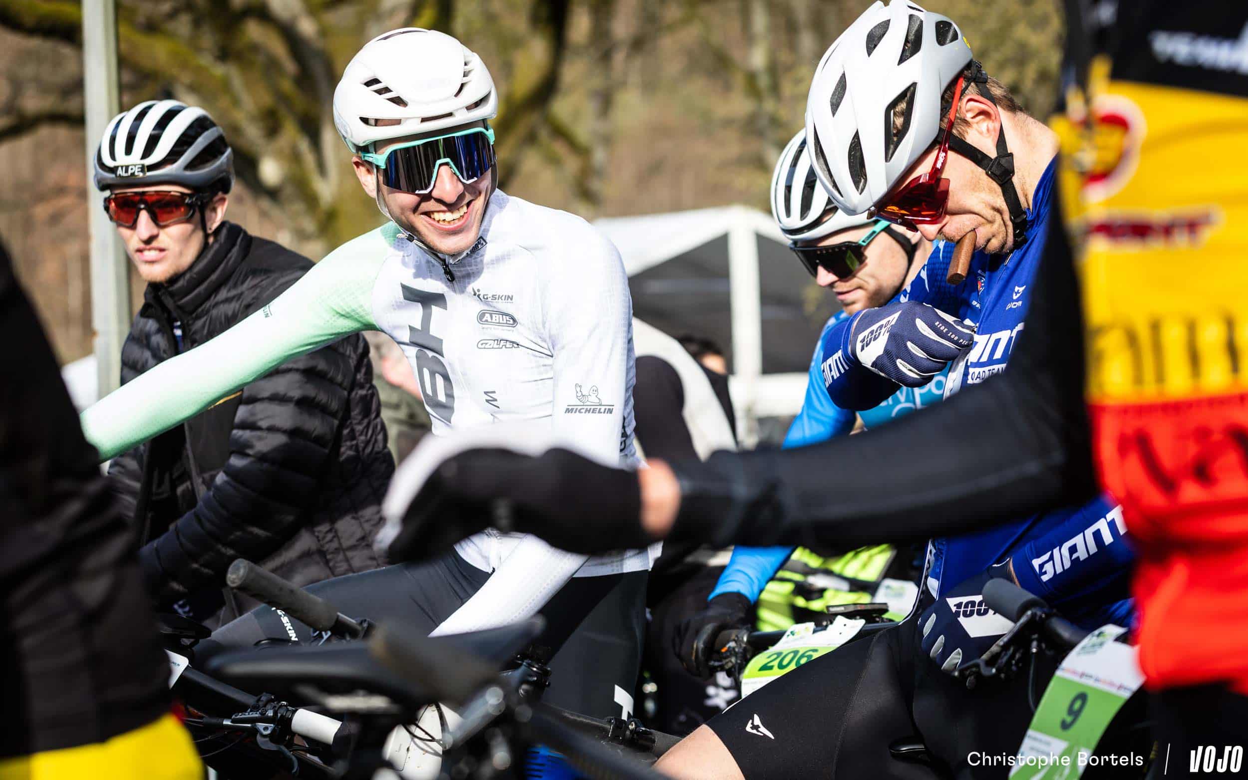 Met Clément Horny (links) en Jens Schuermans (rechts, die nog volop aan het eten is) staan er ook twee XC-specialisten aan de start. Komen zij de marathonrenners het vuur aan de schenen leggen?
