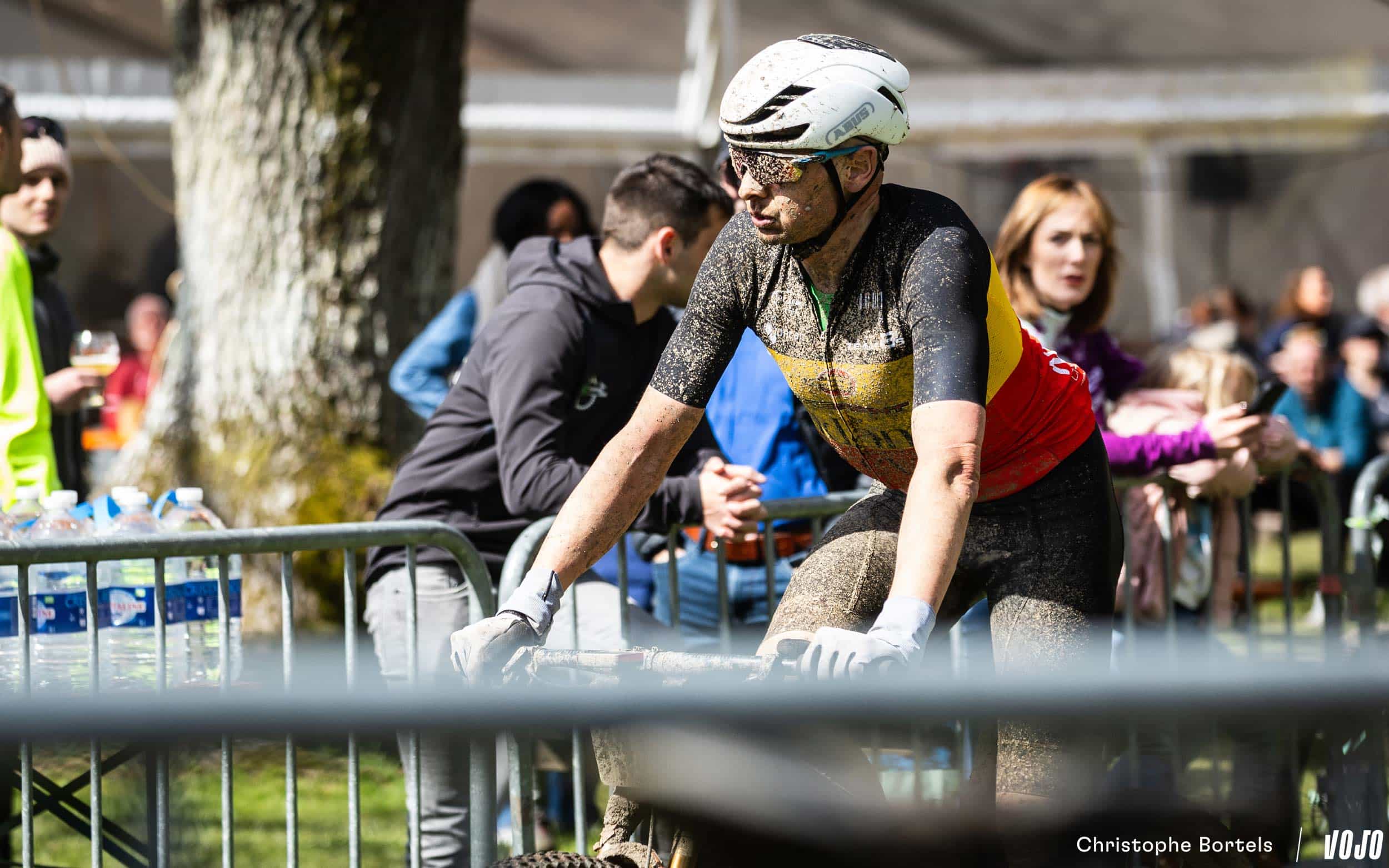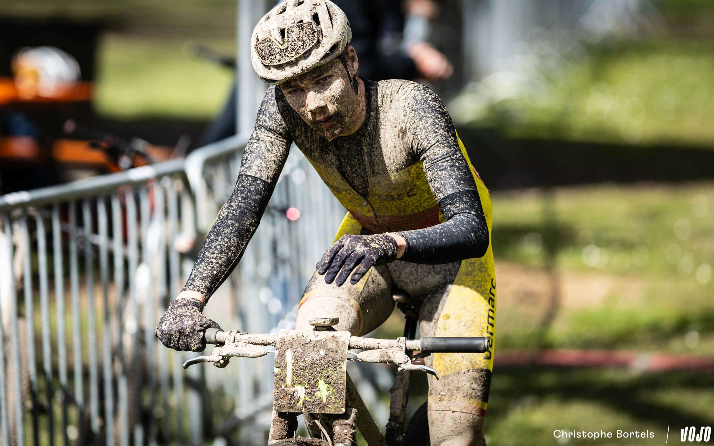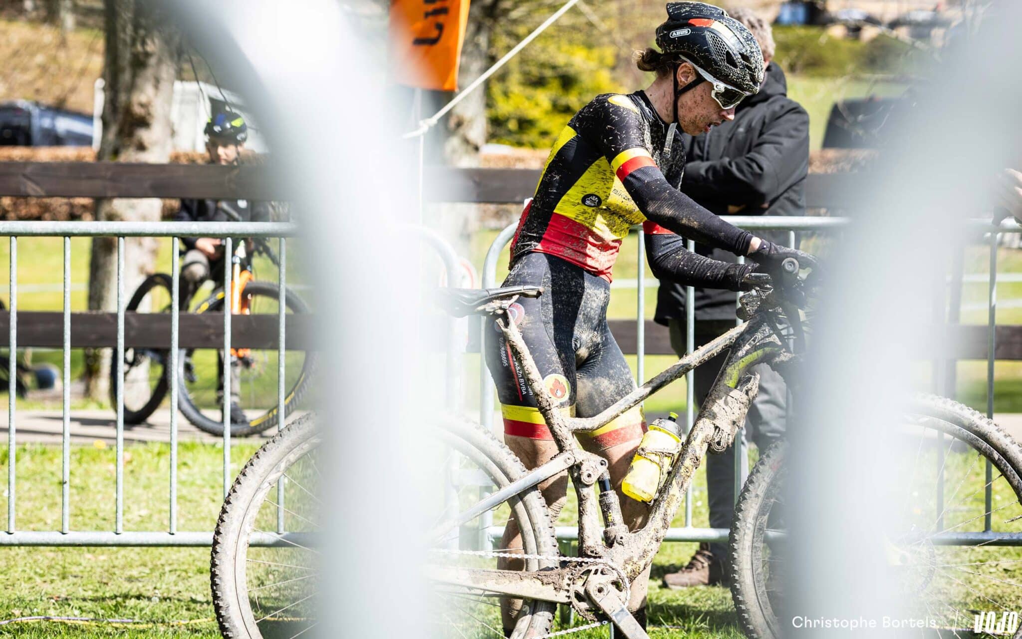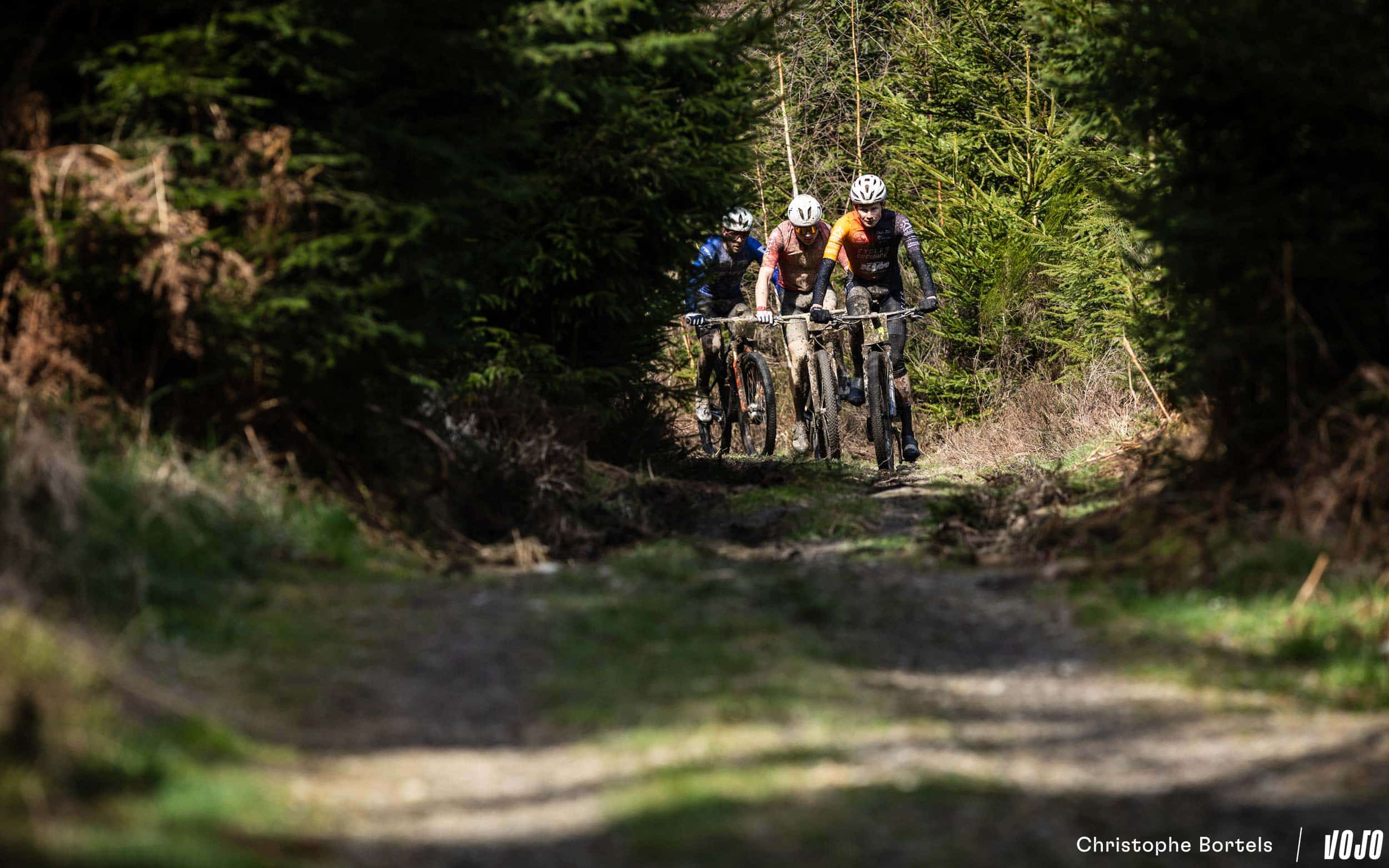 … Jens Schuermans! De meervoudige Belgische kampioen XCO heeft het duo Grégoire-Janssen bijgebeend nadat zijn ketting er een paar kilometer eerder was afgesprongen en vast kwam te zitten.