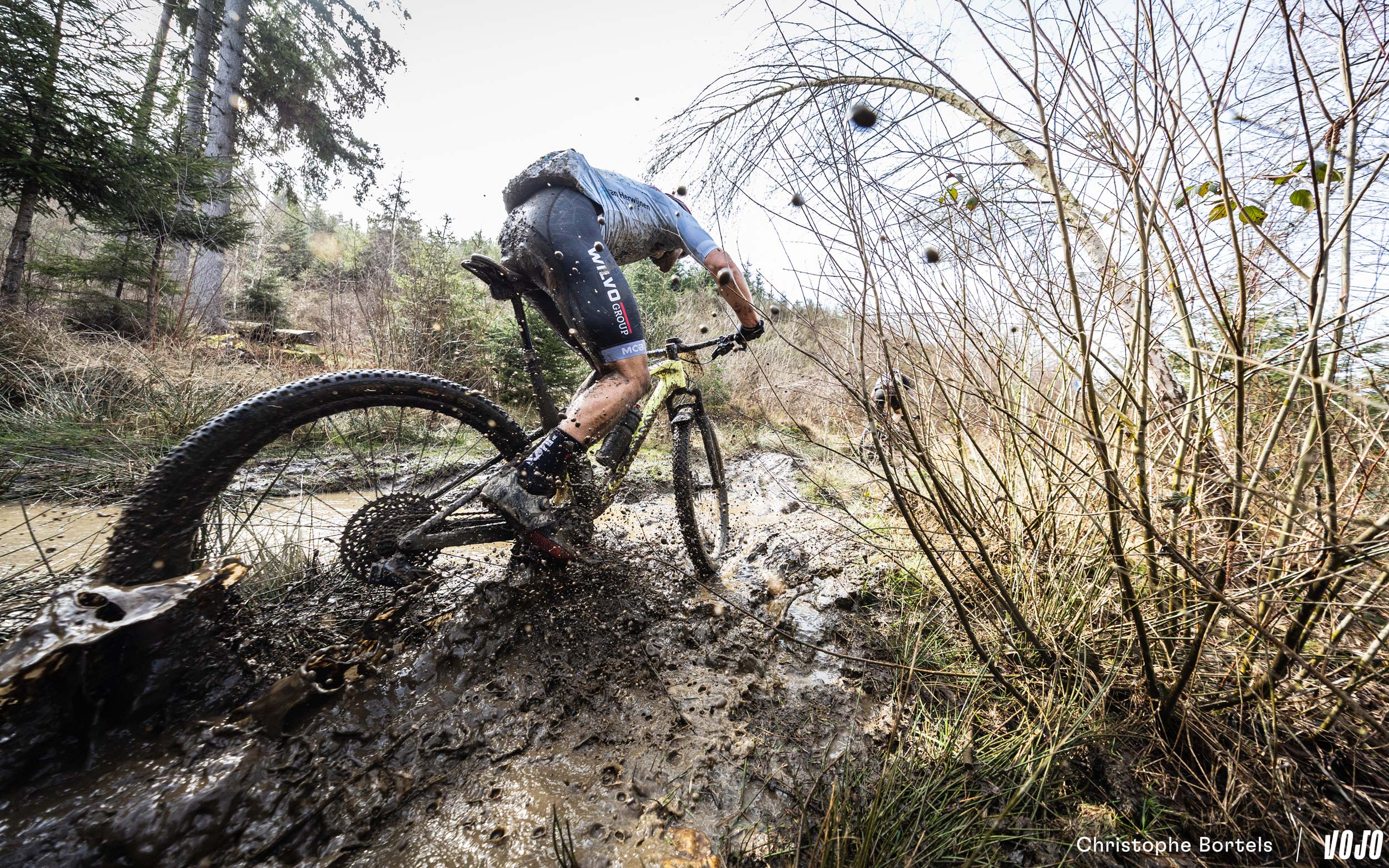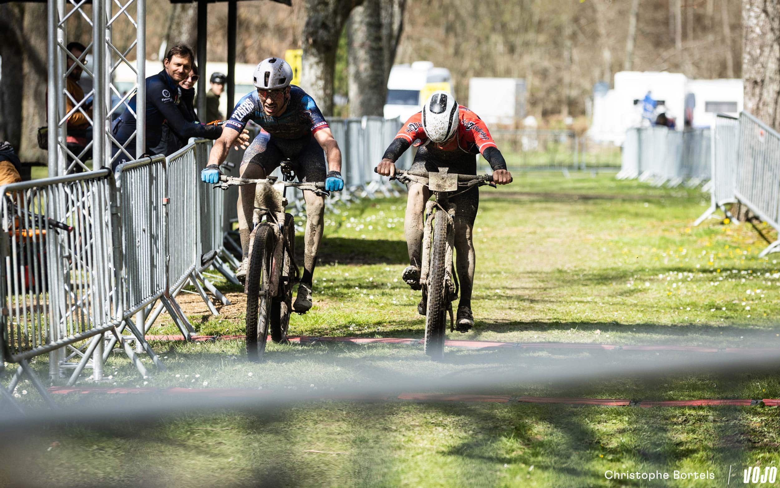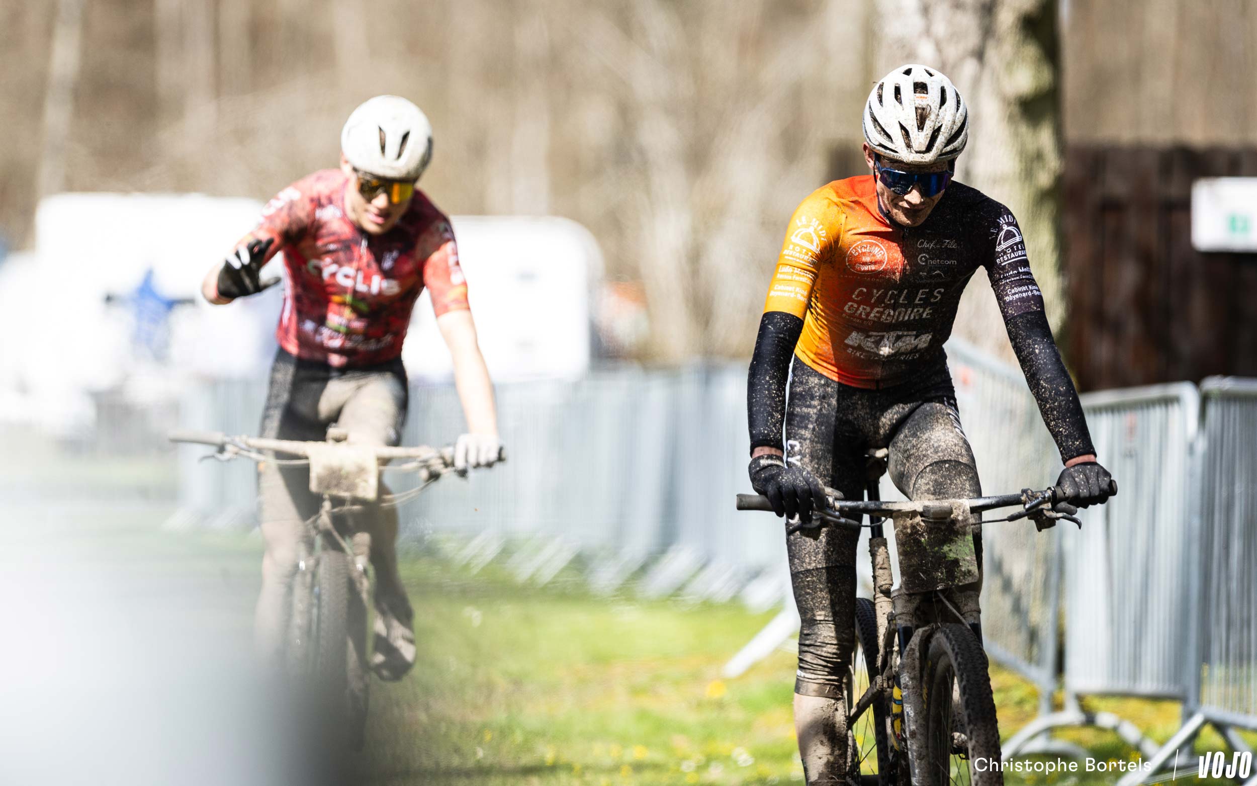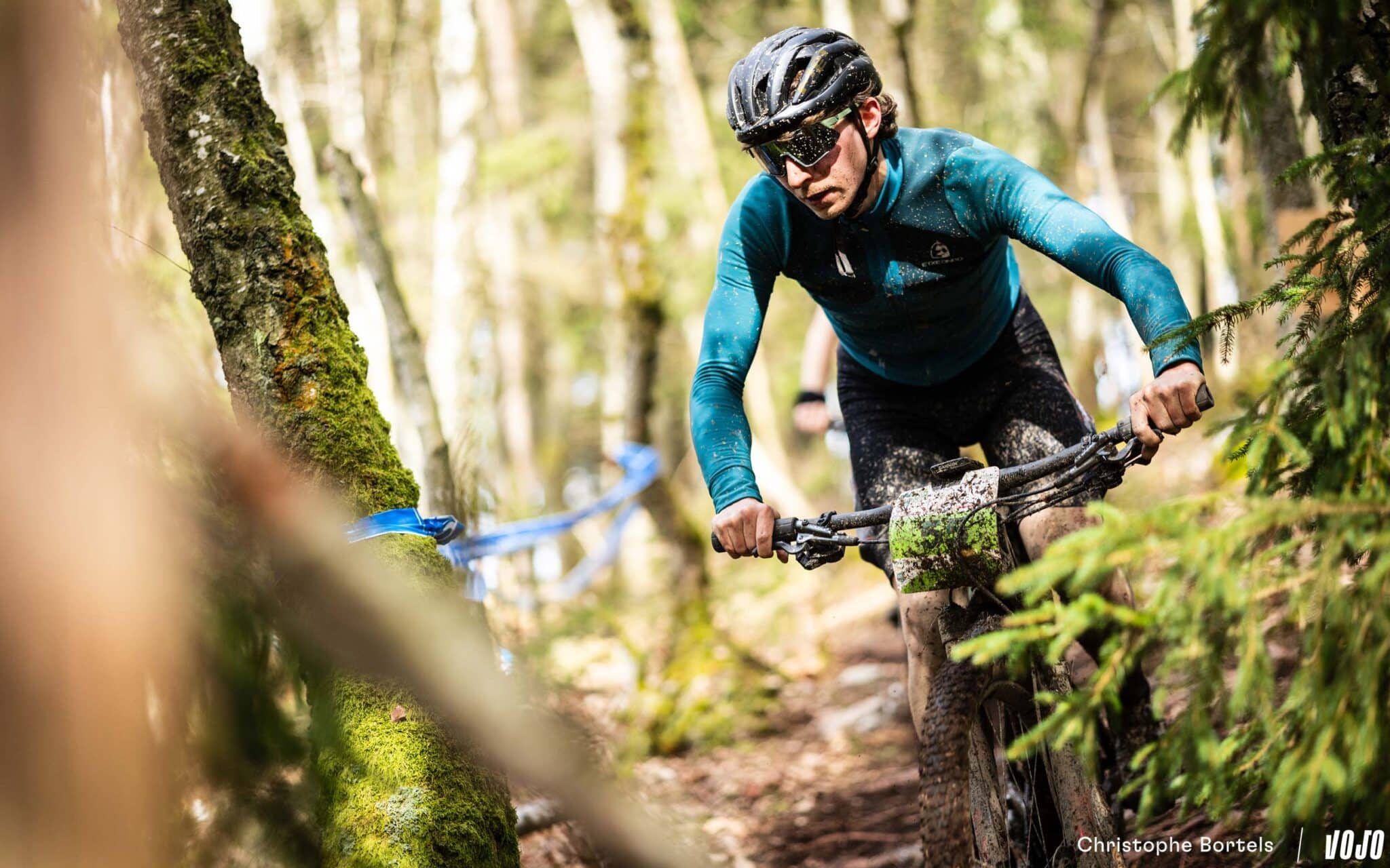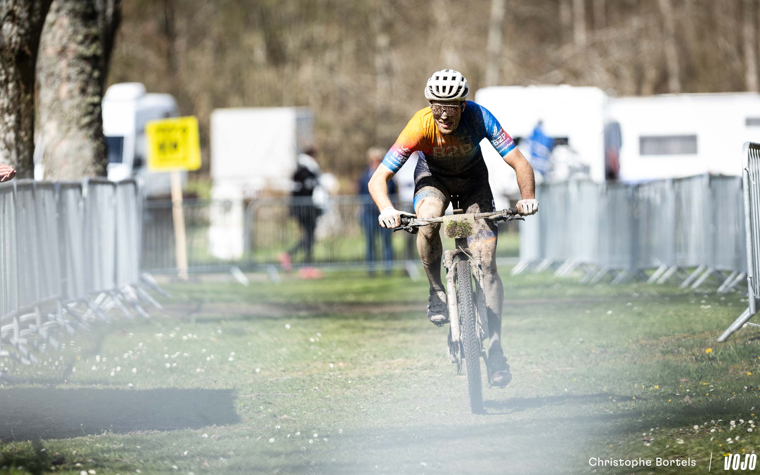 … Jens Schuermans! De meervoudige Belgische kampioen XCO heeft het duo Grégoire-Janssen bijgebeend nadat zijn ketting er een paar kilometer eerder was afgesprongen en vast kwam te zitten.