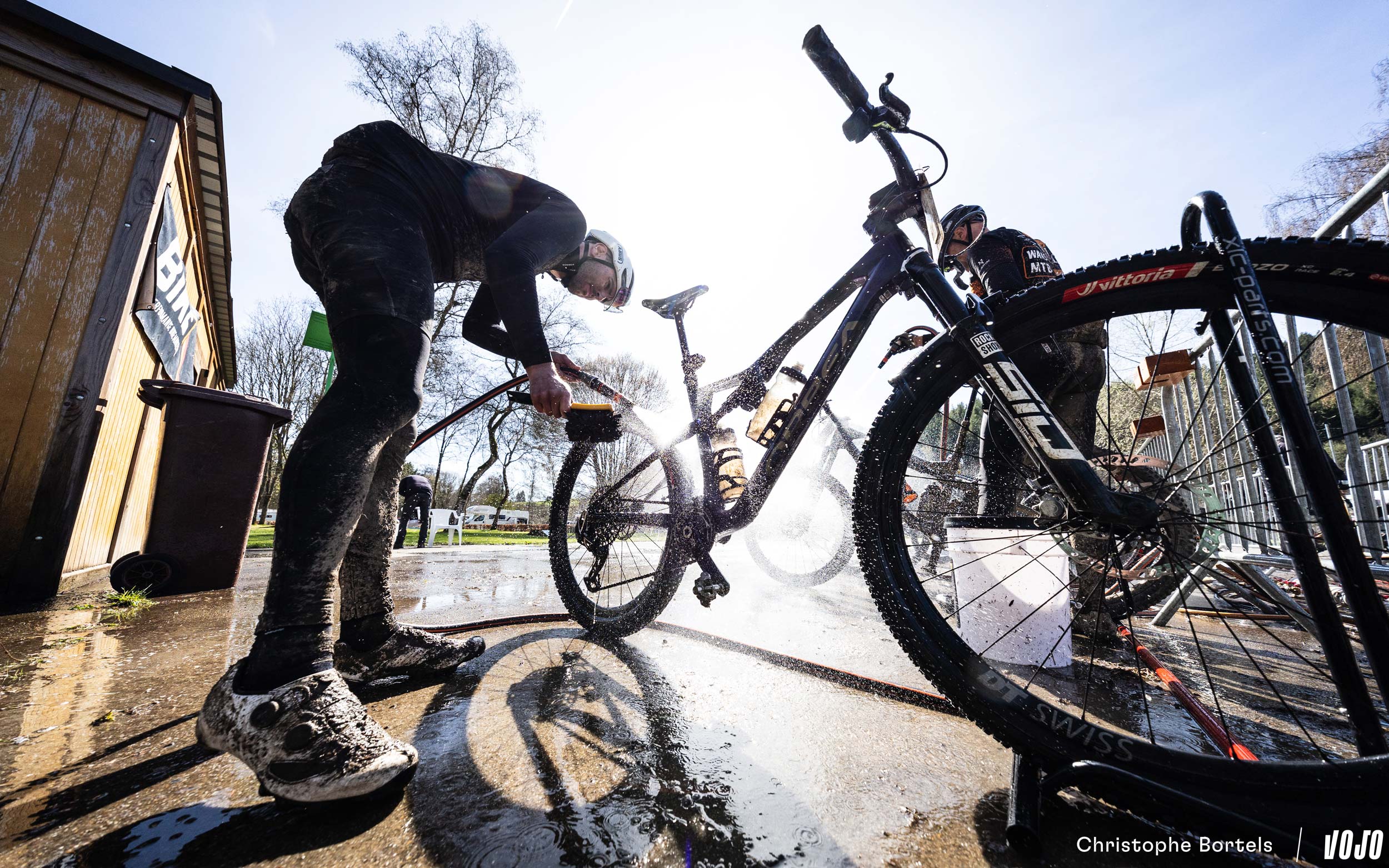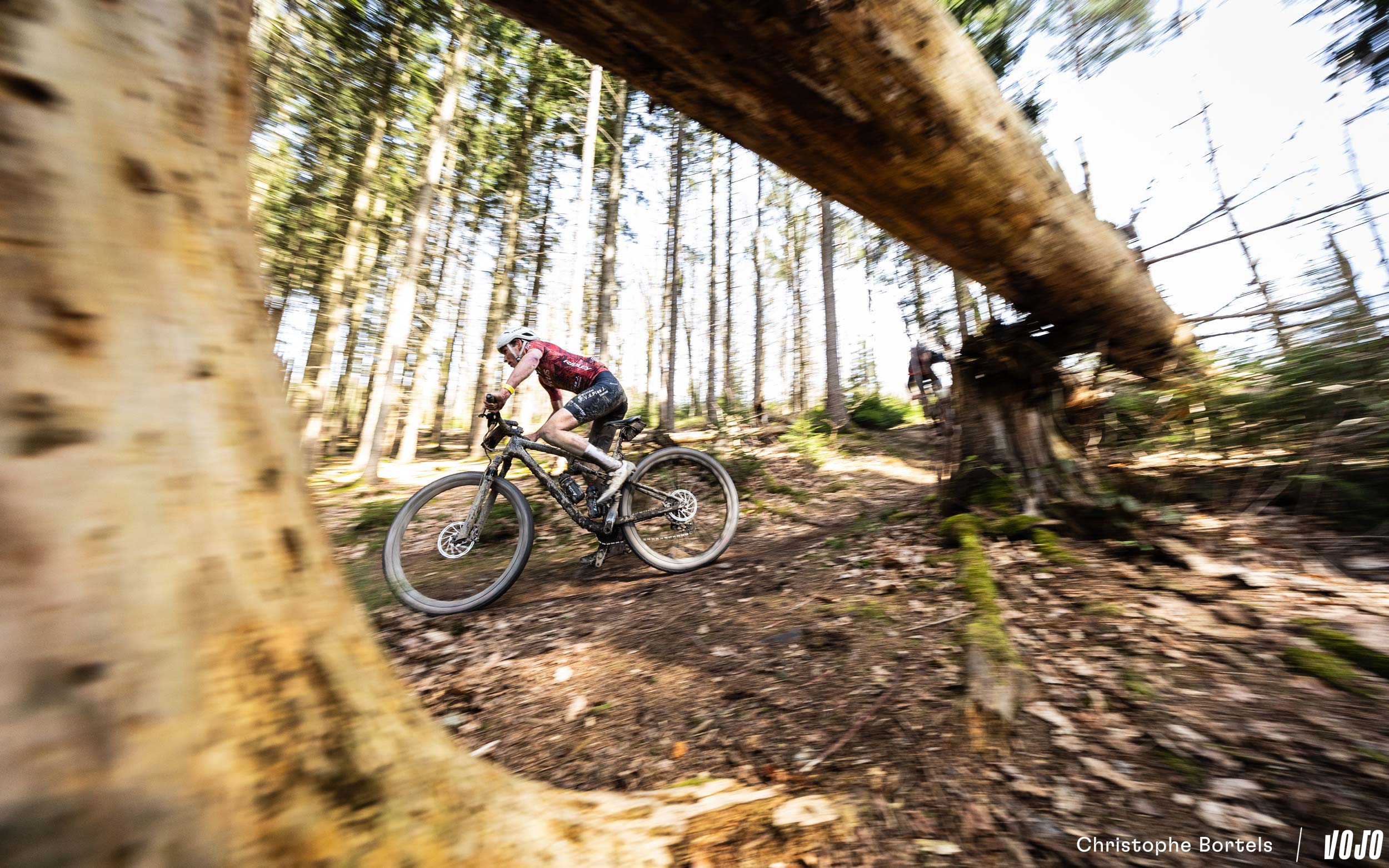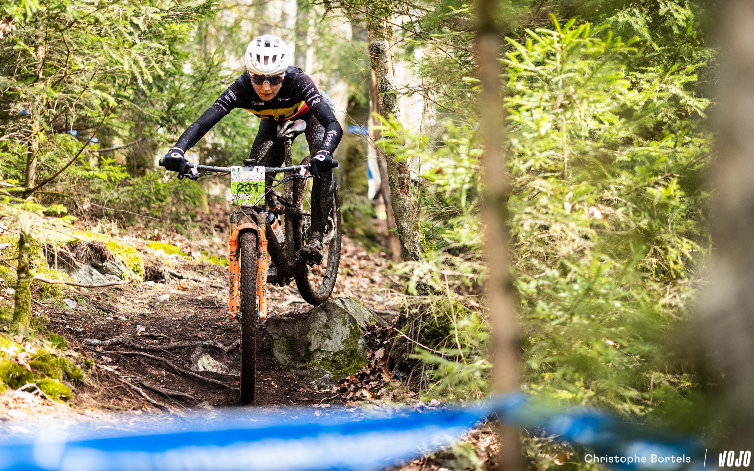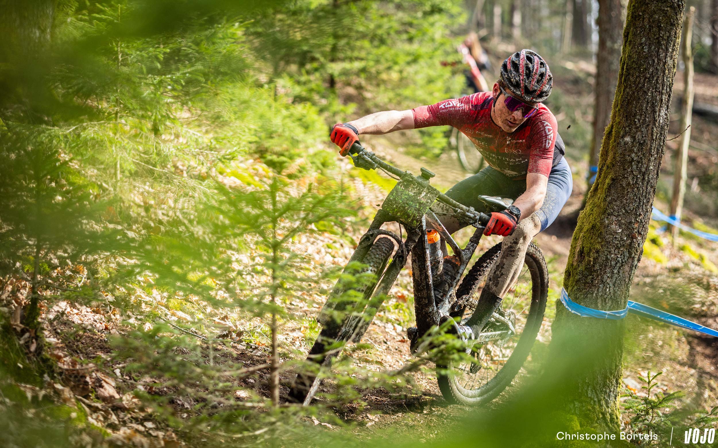 … Jens Schuermans! De meervoudige Belgische kampioen XCO heeft het duo Grégoire-Janssen bijgebeend nadat zijn ketting er een paar kilometer eerder was afgesprongen en vast kwam te zitten.