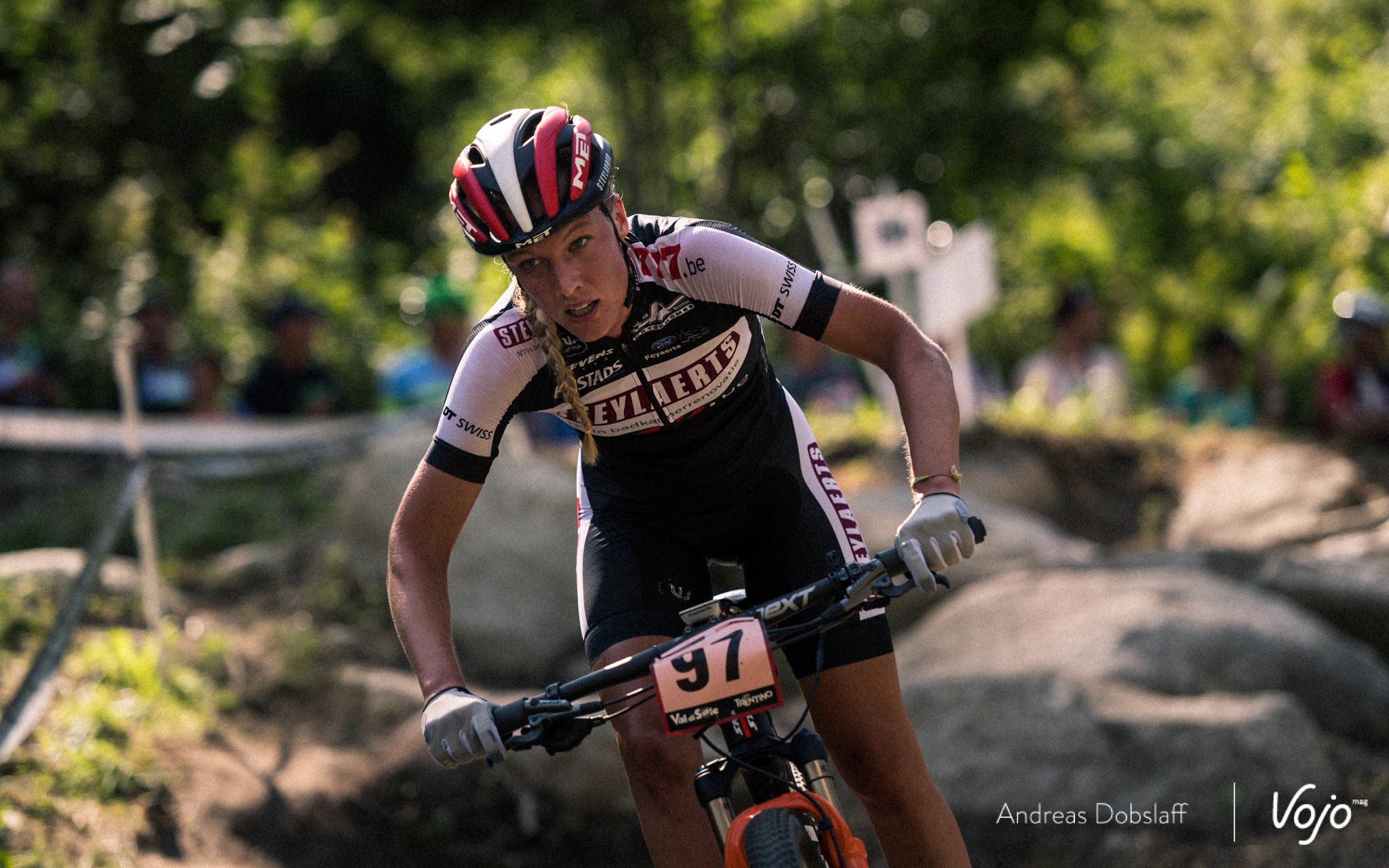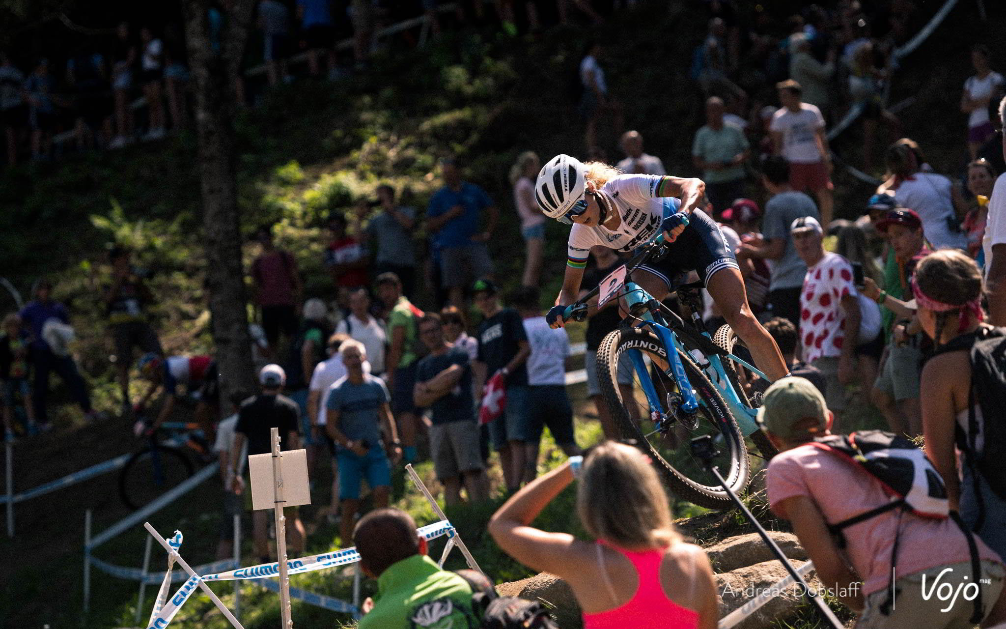 Aan haar overwinning ging een beklijvende wedstrijd vooraf. Wanneer Kate Courtney in de eerste ronde het heft in handen neemt, volgt ze gezwind (net zoals Jolanda Neff) in het spoor van de wereldkampioene.