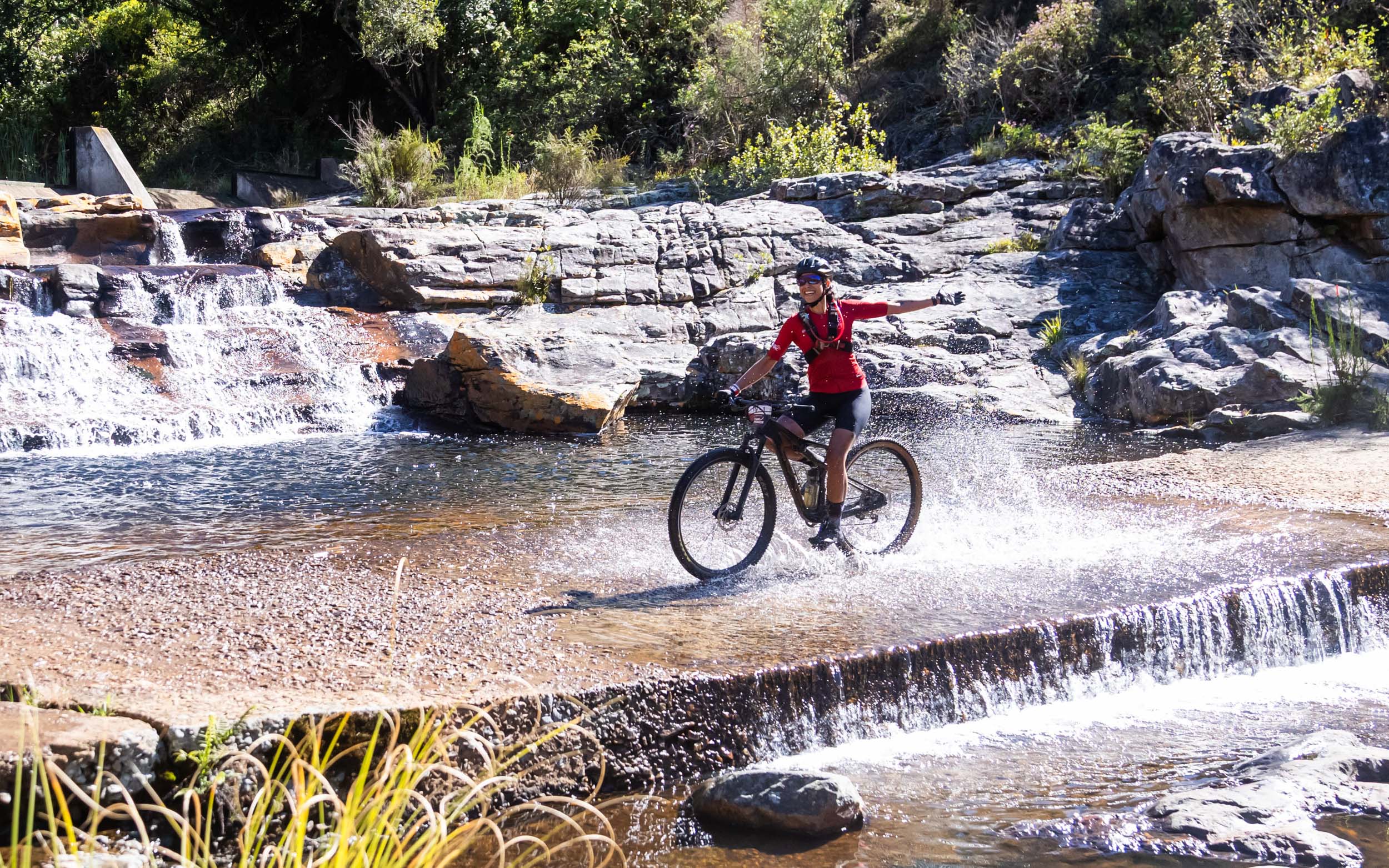 Het laatste startschot is gegeven. Om het schoolterrein te verlaten moeten we een kleine helling omhoog, en dat voelt voor Danny zwaar aan, alhoewel het niets voorstelt met wat we nog te verwerken krijgen. We snorren langs aardewegen en gaan over naar 4×4 tracks. We krijgen zowaar nog wat singletracks voorgeschoteld met een wat hoger technisch gehalte. Verscheidene teams die we hebben moeten laten gaan in het begin van de rit, kunnen we bij de eerste moeilijke passage zowaar plotsklaps inhalen. Dit ligt ons. Nog iets verder krijgen we opnieuw een korte, zeer nijdige technische en steile klim waar we met de nodige balancering en vaardigheid weer een aantal teams voorbij gaan (en ja er volgt nog meer van dit later).