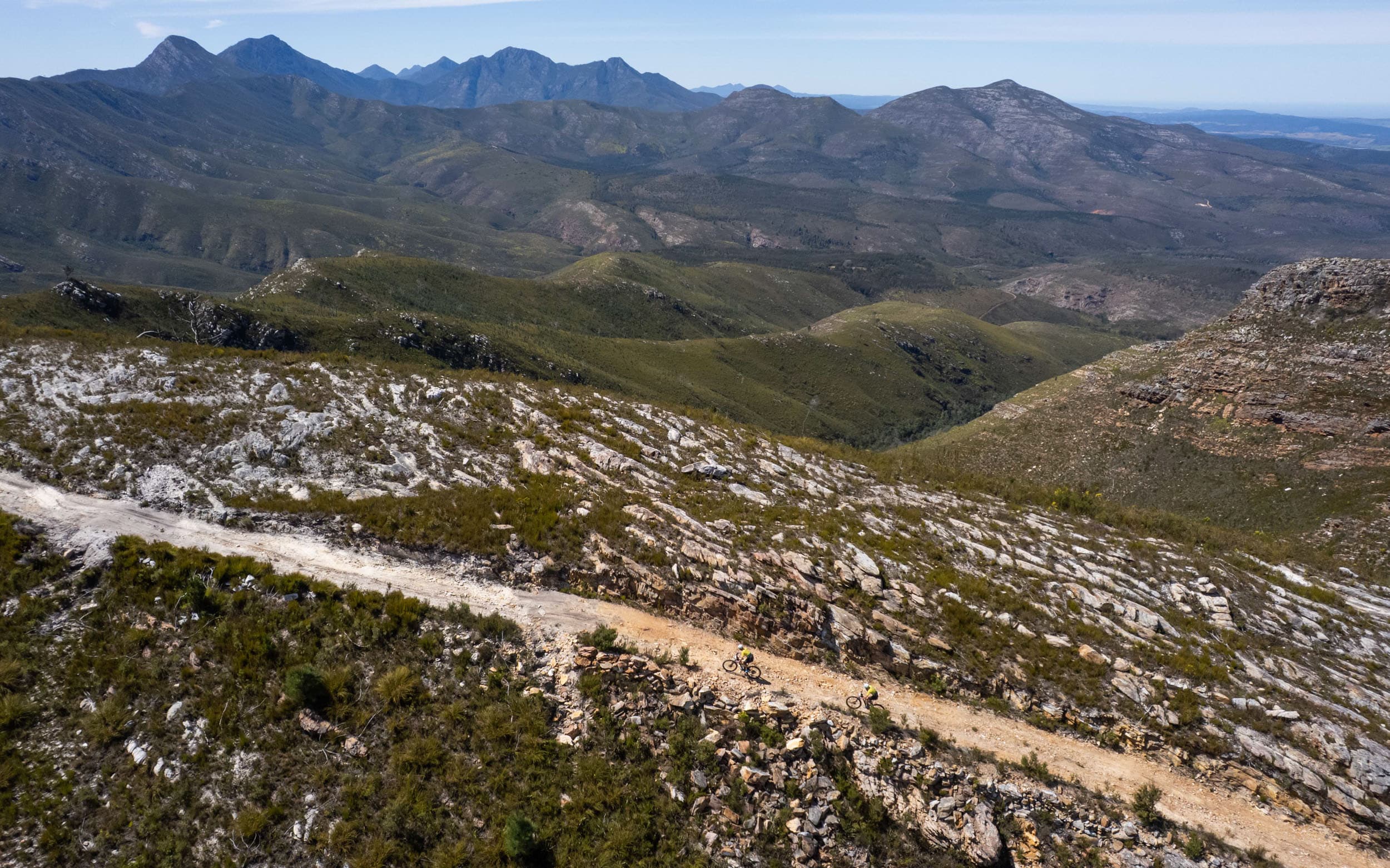 Tot aan de eerste stop rijden we parallel met de Indische Oceaan over brede gravelwegen. De eerste klim komt er na 15 km aan en gaat door tot aan het waterpunt. Zoals gebruikelijk voelt het volledige peloton zich in optima forma en de snelheid ligt hoog, zoniet te hoog, iets wat je later cash betaalt. Danny mag zichzelf hierbij rekenen; ik blijk een te sterke partner te zijn. Ik pas me uiteraard aan zodat het voor hem ook aangenaam blijft.