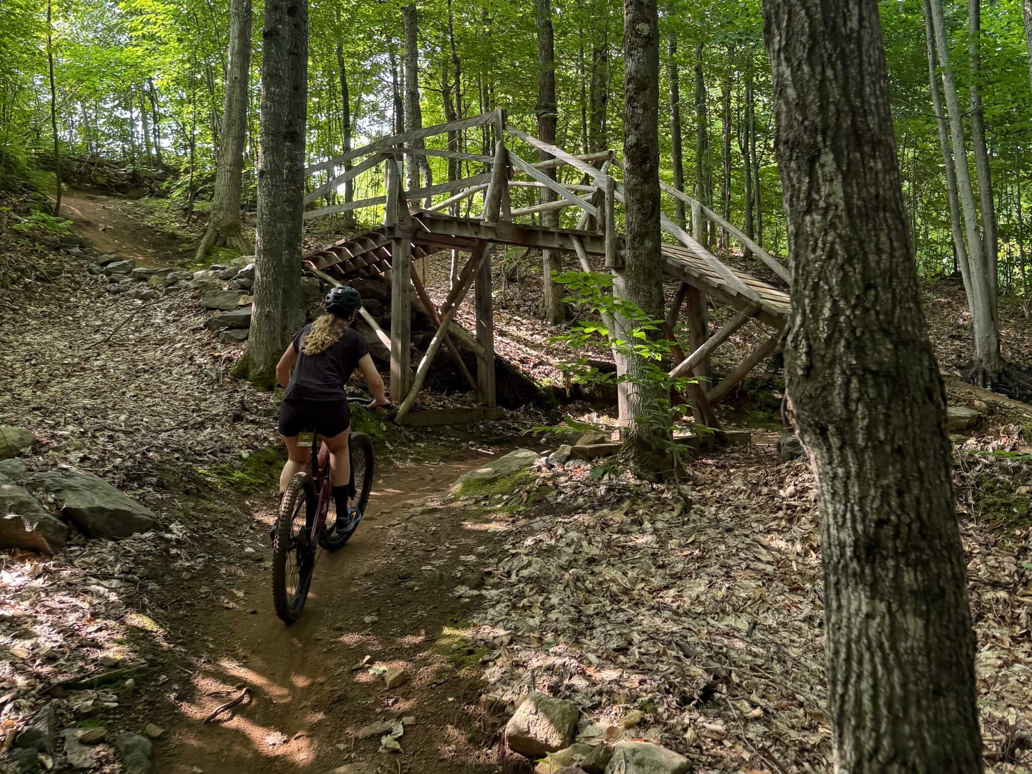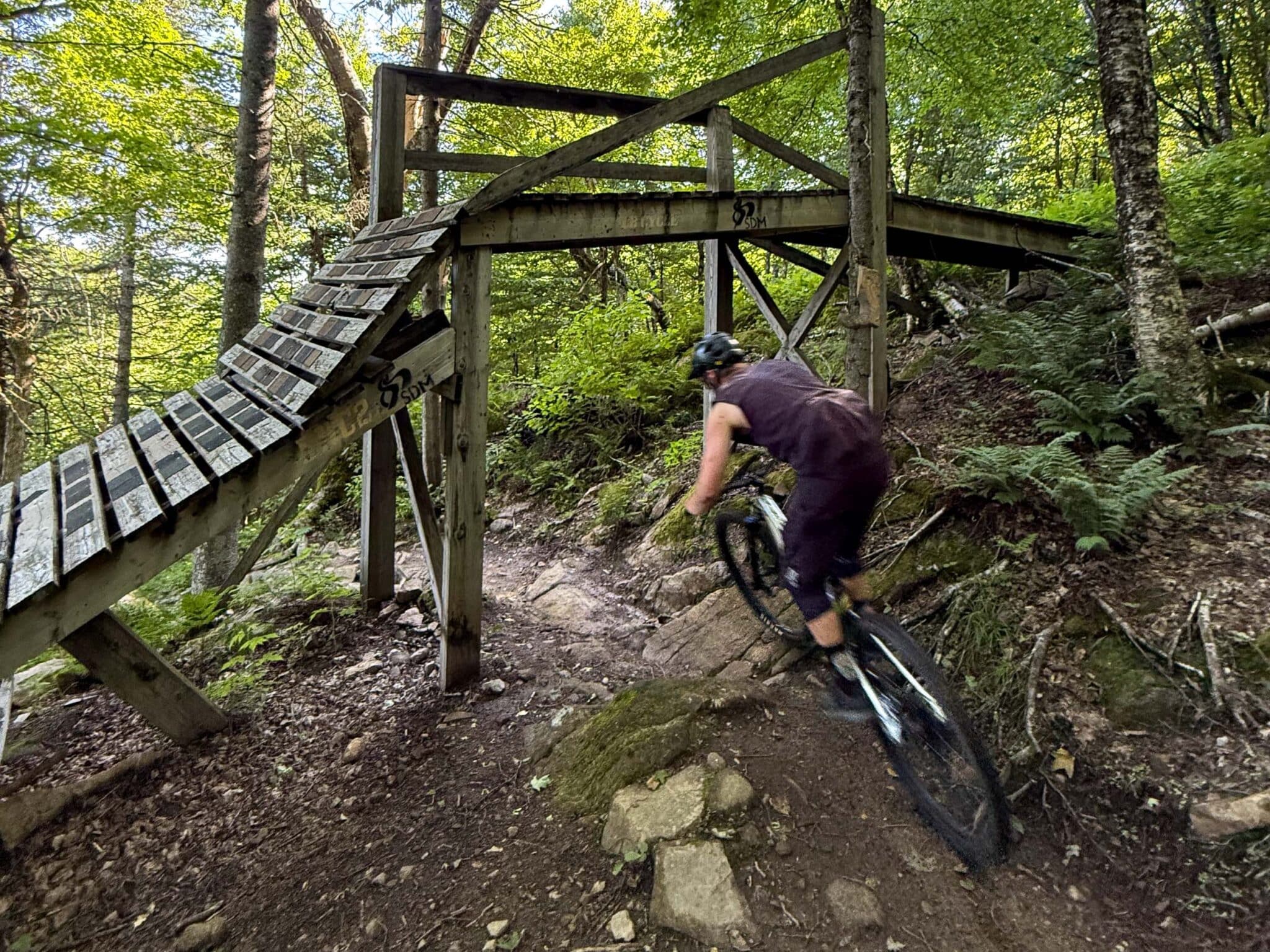 Ik heb in het verleden al meerdere keren in Québec gefietst (zie: Ontdekking | Indian summer in Quebec #2: Lac-Beauport en Sentiers du Moulin), en deze zomer ben ik weergekeerd, voor het eerst puur voor een vakantie. Oude gewoonten zijn echter moeilijk af te leren. Ik kon de verleiding niet weerstaan om een paar mountainbiketochten te maken. Tijdens mijn eerste bezoeken, waarvan de laatste zes jaar geleden, had ik zo genoten van het fietsen in hun mountainbikecentra dat ik een onweerstaanbare drang voelde om hun prachtige trails opnieuw te ervaren, met hun perfecte balans tussen door de mens aangelegd en respect voor het natuurlijke terrein.