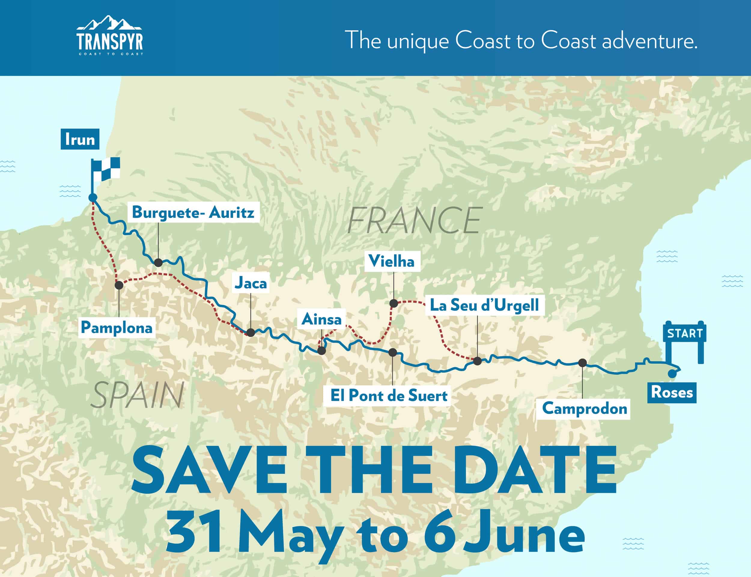 Het concept van de Transpyr is even eenvoudig als mooi: dwars door de Pyreneeën fietsen, waarbij de twee zeeën die aan de voet liggen van dit imposante gebergte in zeven dagen met elkaar worden verbonden. De organisatie zorgt ervoor dat dit in alle rust kan gebeuren door de logistiek op zich te nemen, de deelnemers hoeven enkel maar te trappen en te genieten.