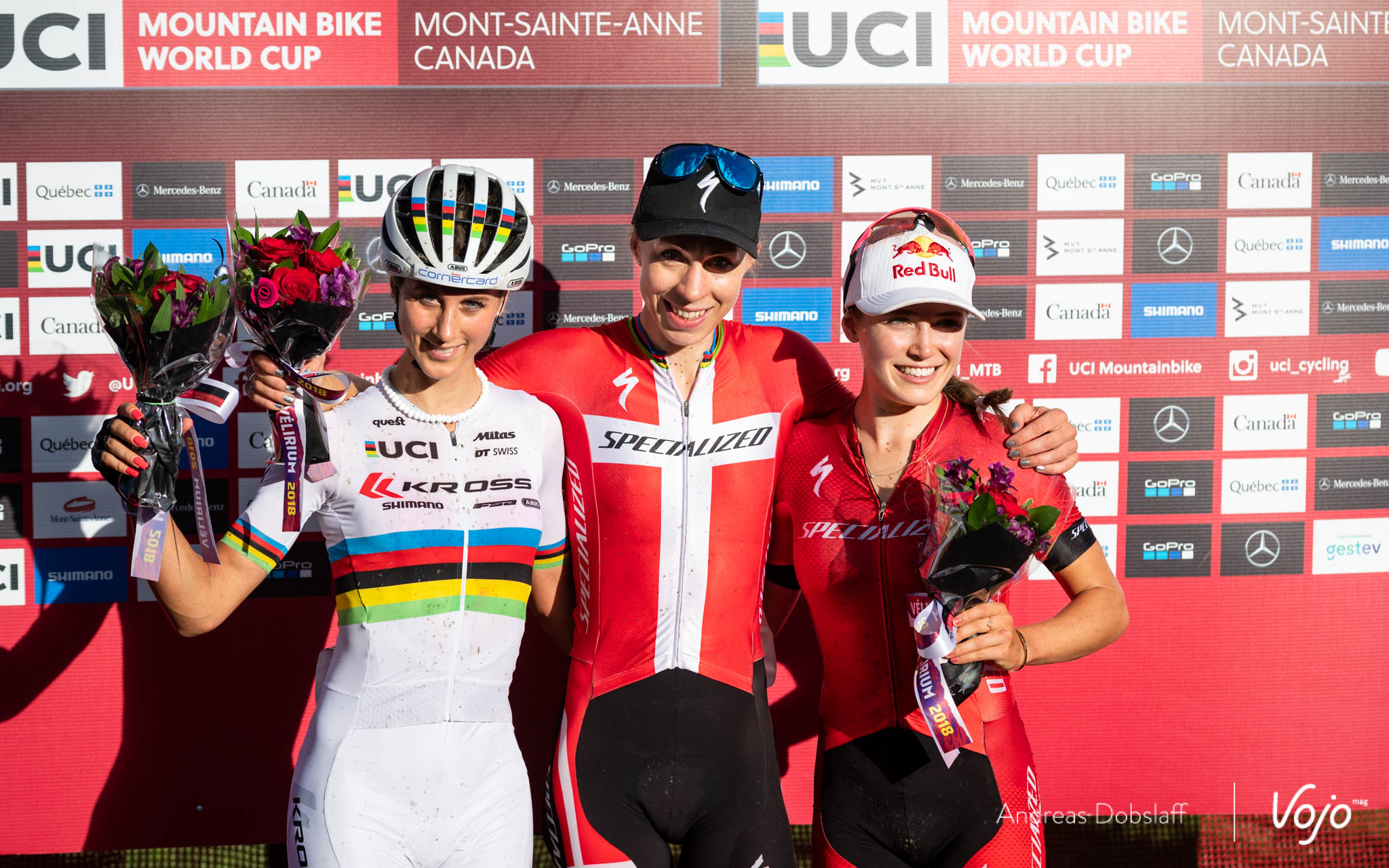 Mathias Fluckiger, Anton Cooper en Lars Forster, de nieuwe Europese kampioen, eindigden op de andere ereplaatsen. Wereldkampioen Nino Schurter had last van zijn luchtwegen en eindigde pas als 22ste. Jens Schuermans verkoos om, na een lange en lastige reis van Glasgow naar Mont-Sainte-Anne, niet te starten in de shorttrack. Ook Michiel van der Heijden bleef vrijdag aan de kant staan. Mathieu van der Poel is dan weer niet in Canada en gooit daarmee zijn tweede plaats in de tussenstand om de wereldbeker te grabbel; Van der Poel gaf de voorkeur om in Glasgow te blijven waar hij zondag deelneemt aan de Europese kampioenschappen op de weg.