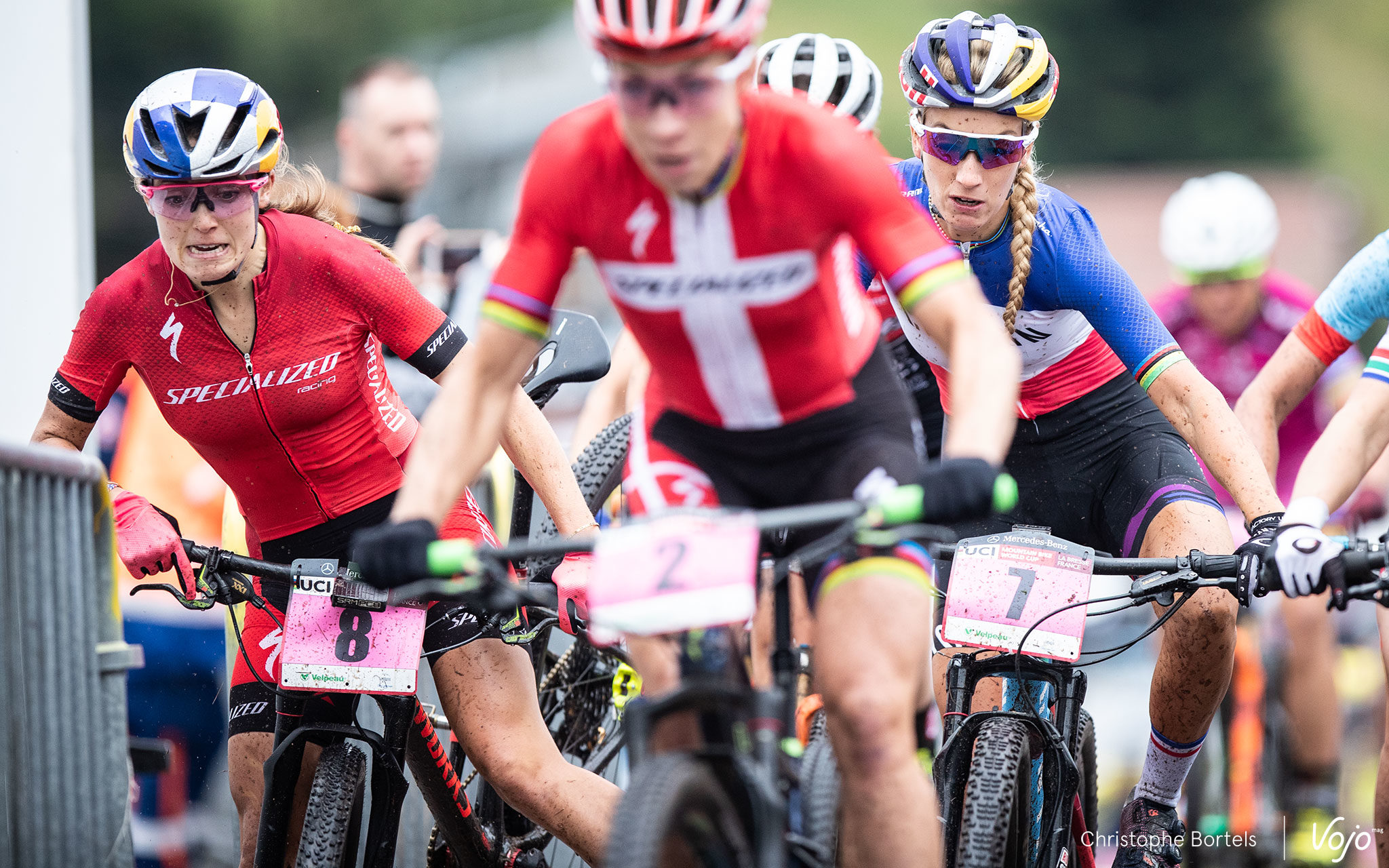 Misschien nog indrukwekkender dan de aanval van Mathieu van der Poel, was deze van de Deense Annika Langvad bij de vrouwen. Jolanda Neff en Barbara Benko leken wel als aan de grond genageld toen de Deense haar duivels ontbond.