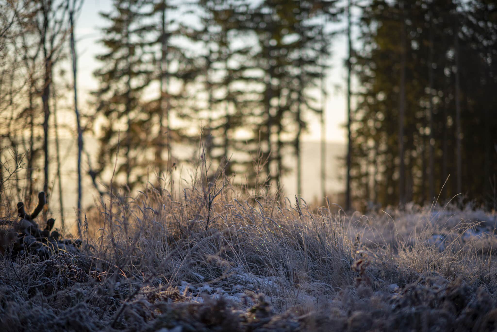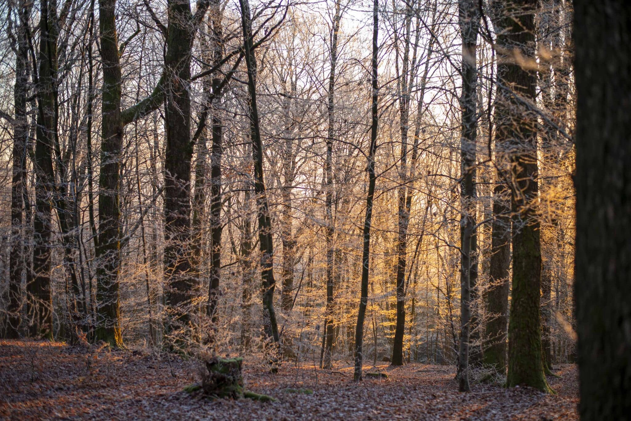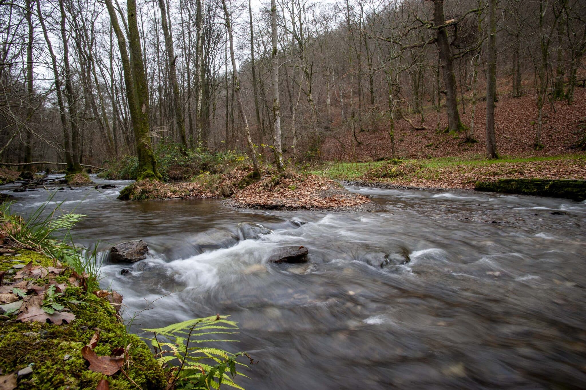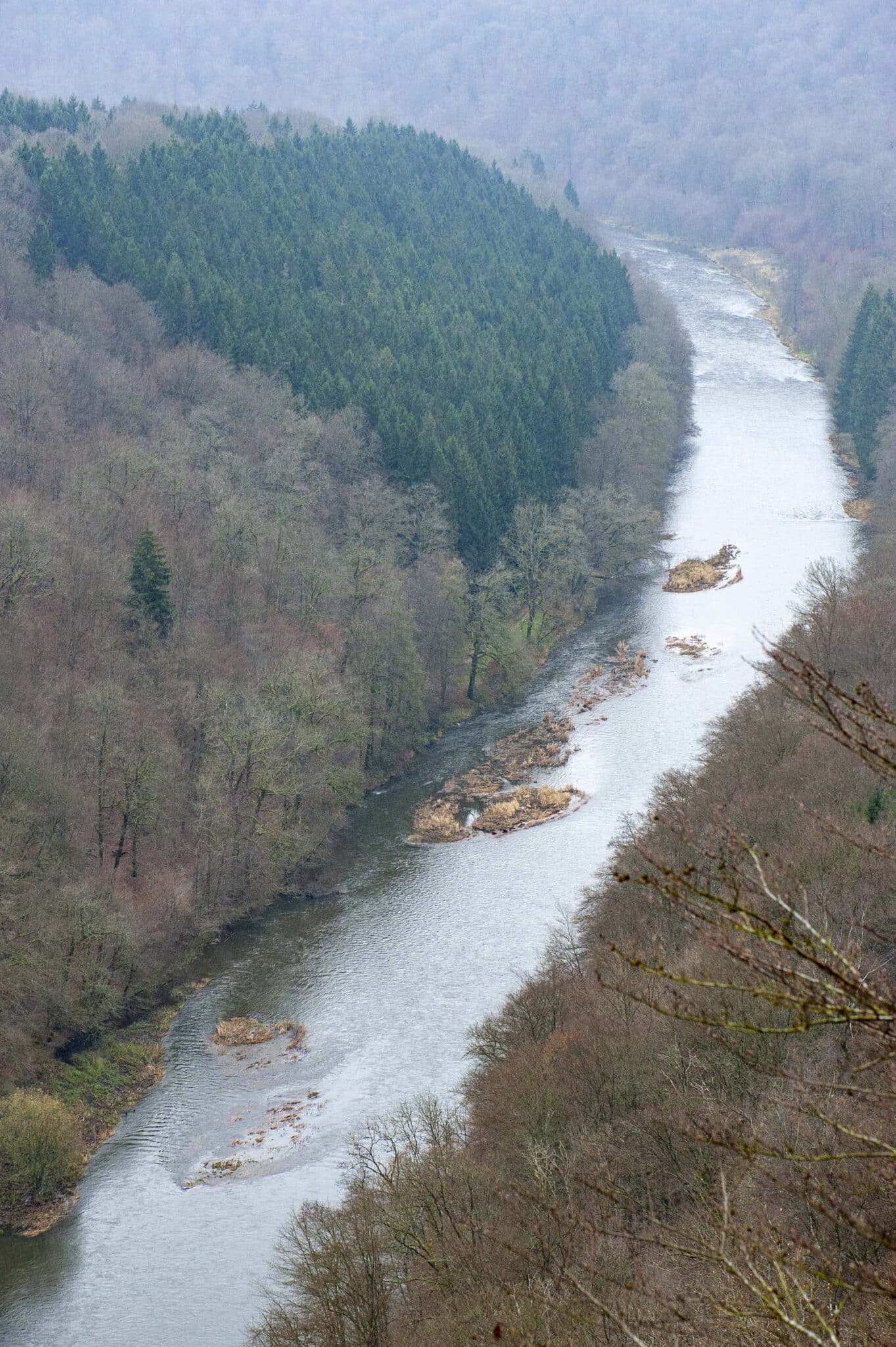 De Ardennen en zijn uitgestrekte bossen omsluiten ons geleidelijk: het volgende dorp ligt op meer dan tien kilometer afstand. Hoewel de rivieroevers niet wit zijn geworden van de vorst, is de vorst wel als een delicate laag kant over de boomtoppen gedrapeerd.