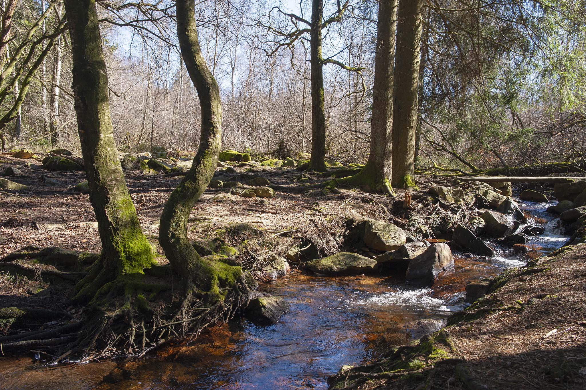 De klim gaat verder: geen enkel bosvreemd geluid verstoort dit gevoel van eenzaamheid op de wereld. De kilometers verstrijken ongestoord. Bij de doorwaadbare plaats over de Pont Gérard lijkt de route deze wereld van stilte te verlaten. Vanaf Harre slingert het brede pad zich opnieuw een weg door het bos.