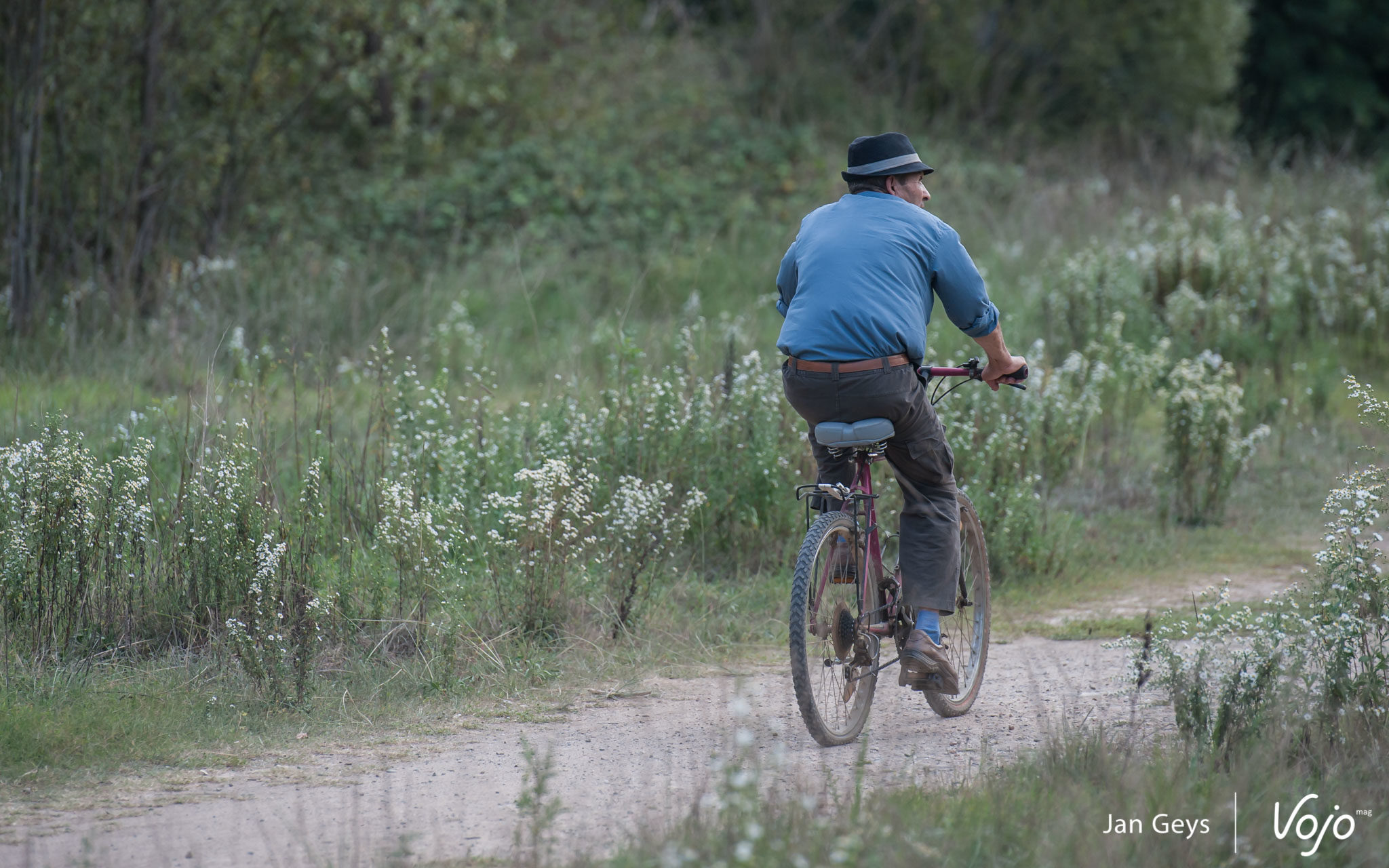 Slechts weinigen blijven hier in het mulle zand op de fiets.
