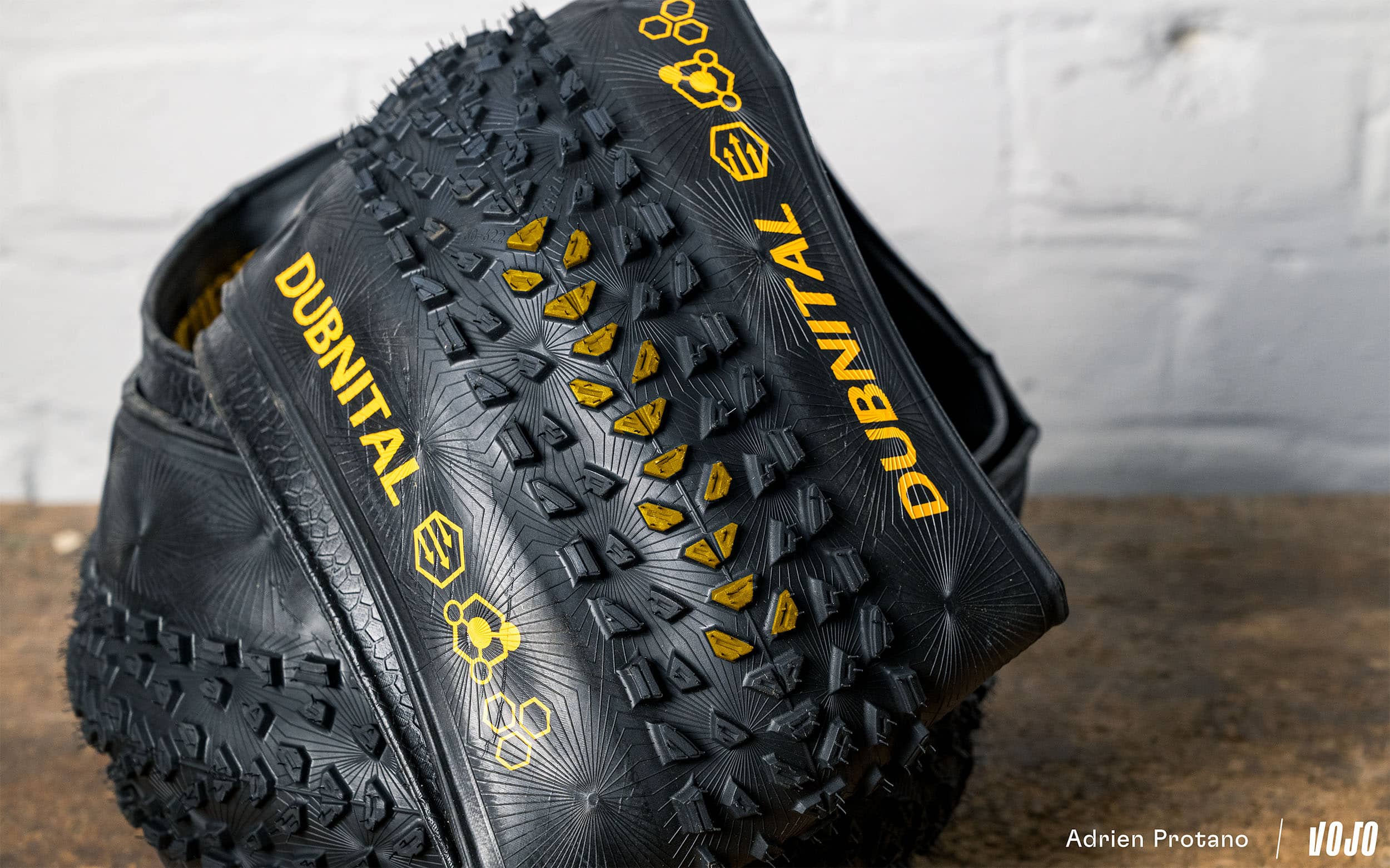 Het profiel heeft hogere noppen dan de Dubnital, met een grotere tussenruimte voor meer grip. Een tussenliggende rij met pijlvormig geplaatste noppen zorgt voor een vloeiende overgang naar de opvallende zijnoppen, wat extra vertrouwen geeft in bochten.