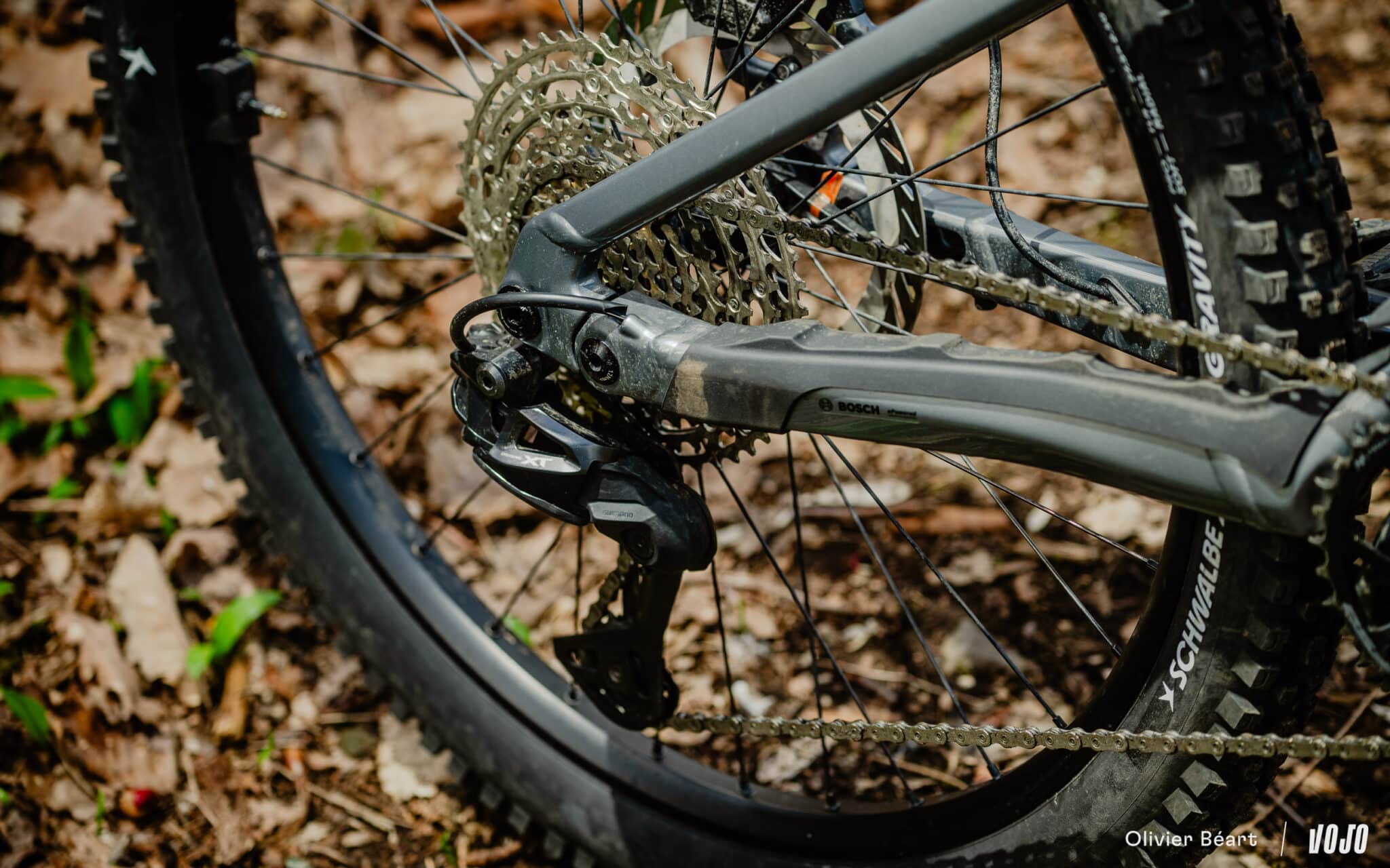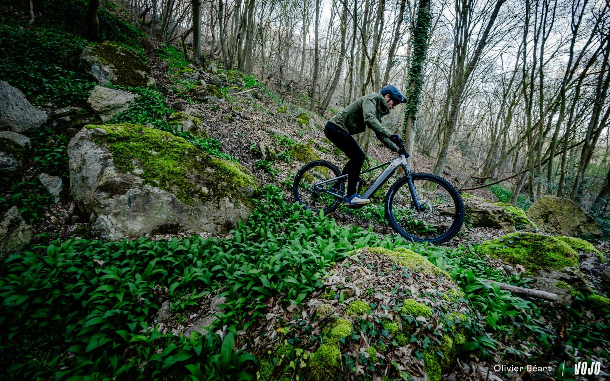 Deze motor en de fiets maken het mogelijk om vrij snel vaart te maken en te spelen in de technische secties, maar nog voordat je bij de echte afdalingen aankomt, merk je al dat de voorvork niet aan de verwachtingen voldoet. Waar er op de achterdemper niets aan te merken valt, weet de RockShox Zeb Base moeilijker raad met een opeenvolging van schokken, zelfs op vlak terrein. Dat is jammer, want het chassis van de voorvork is goed; het probleem ligt echt aan de hydraulica — specifiek in het beheer van de compressie en vooral de rebound — wat voorkomt dat de vork echt goed presteert.