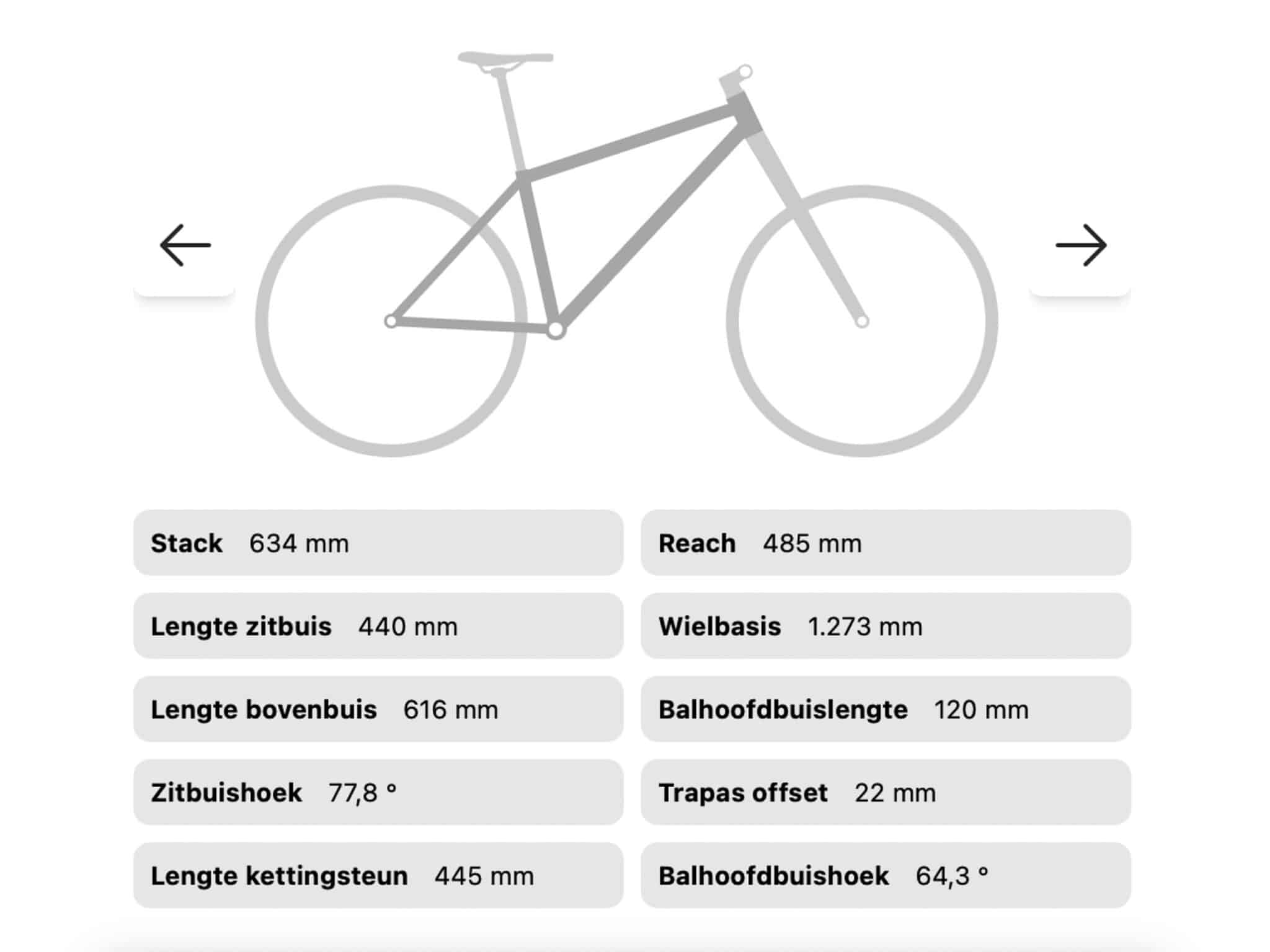 26,2 kg (maat L, zonder pedalen)