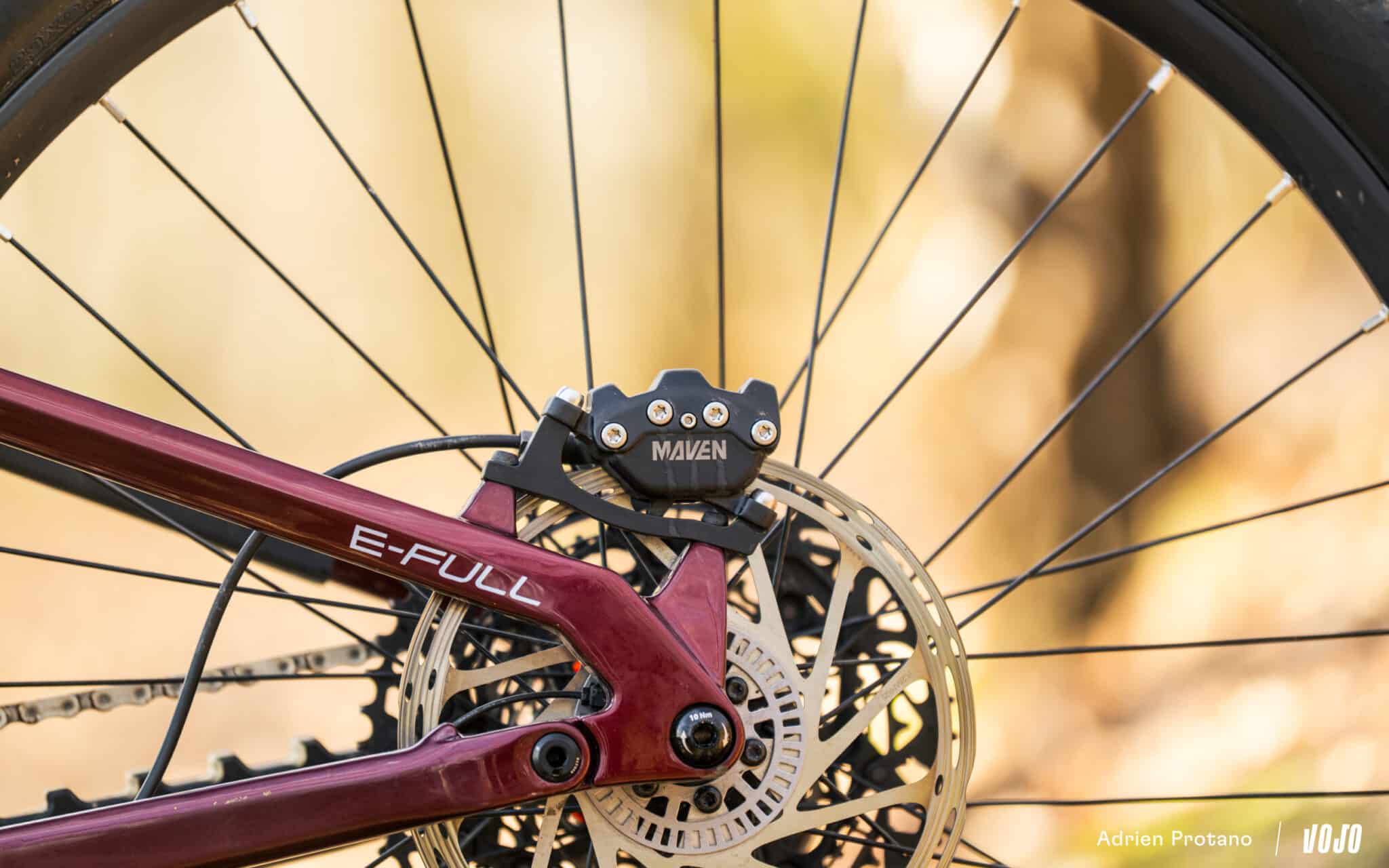 De wielen daarentegen zijn een duidelijke teleurstelling. Ze zijn zwaar, traag en te flexibel. Ze voelen aan alsof ze constant verdraaien onder belasting en snel kromtrekken. Dit is een significant zwak punt in de constructie, zeker gezien het koppel en het gewicht van de fiets. Aan de andere kant waren we blij verrast door de SRAM Maven-remmen, zelfs in de meer betaalbare Base-versie. Remkracht, consistentie en duurzaamheid zijn allemaal aanwezig, wat geruststellend is voor een e-MTB van dit formaat.