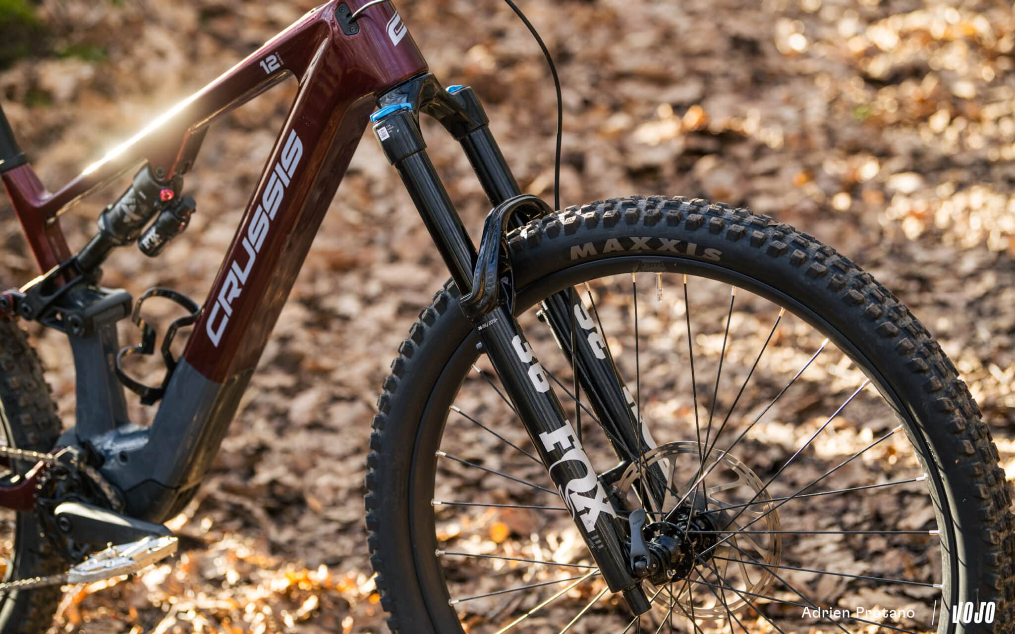 Crussis vertrouwt op 160 mm veerweg vooraan en 150 mm achteraan. Op ons testmodel zijn de veringen afkomstig van Fox, bestaande uit een Fox 36 Grip Performance-voorvork en een Fox Float X-achterdemper.