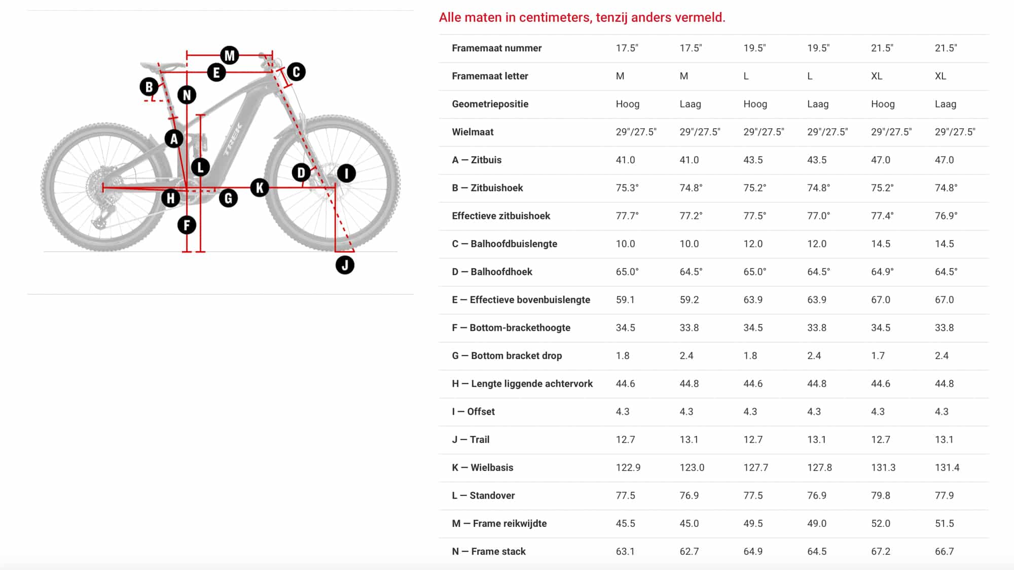 Trek stopt met de levering van maat M/L en herpositioneert de vier maten (S, M, L, XL). Let op: maat S wordt verkocht met een 27,5 inch voorwiel.