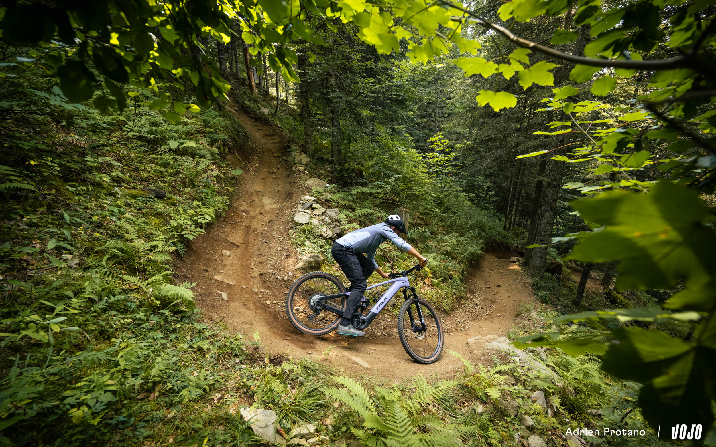 Een flip-chip aan de onderkant van de demper maakt twee veercurven mogelijk: een meer progressieve en een meer lineaire. De eerste geeft de fiets een levendiger en dynamischer gevoel. De tweede biedt meer comfort en grip op ruw terrein. De twee standen veranderen de fiets niet radicaal, maar zorgen wel voor merkbare veranderingen. Wij gaven de voorkeur aan de lineaire stand, die beter geschikt is voor de afdalingen in de bergen waar we deze zomer met de fiets hebben gereden. Voor rustigere ritten op minder ruw terrein is de progressieve stand echter interessanter.