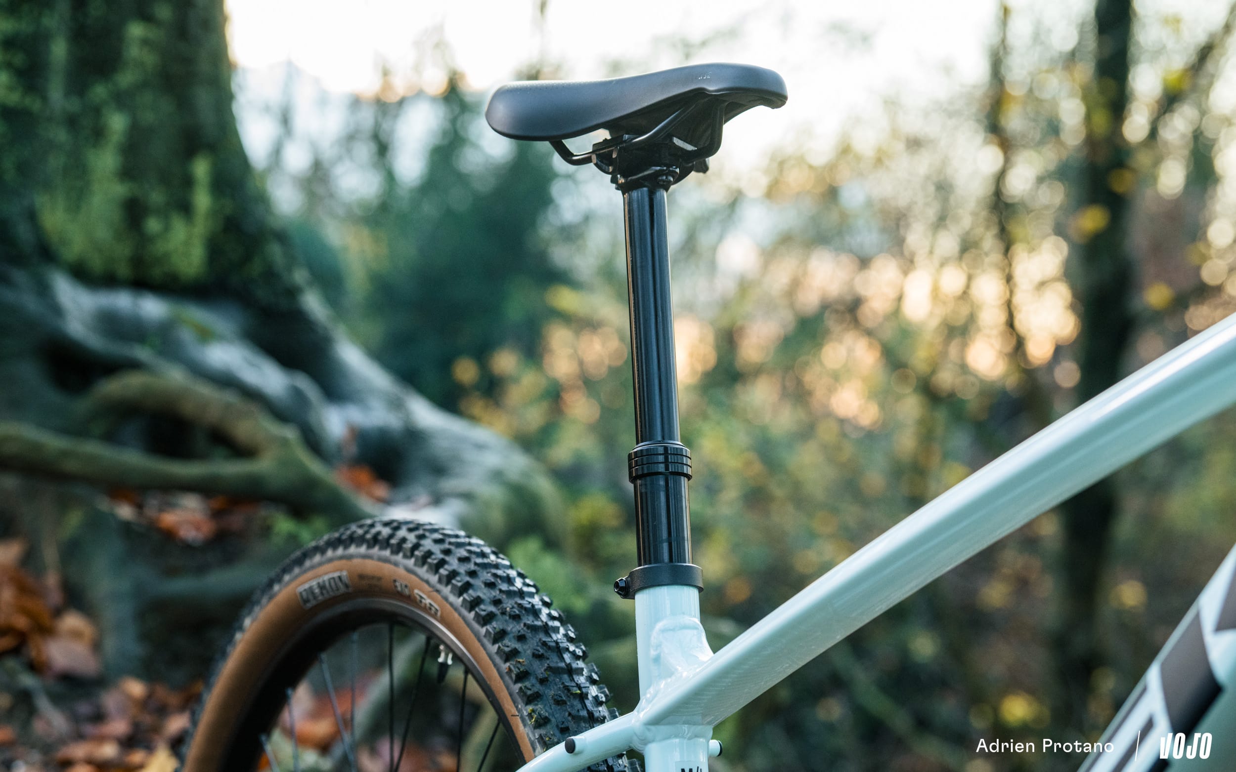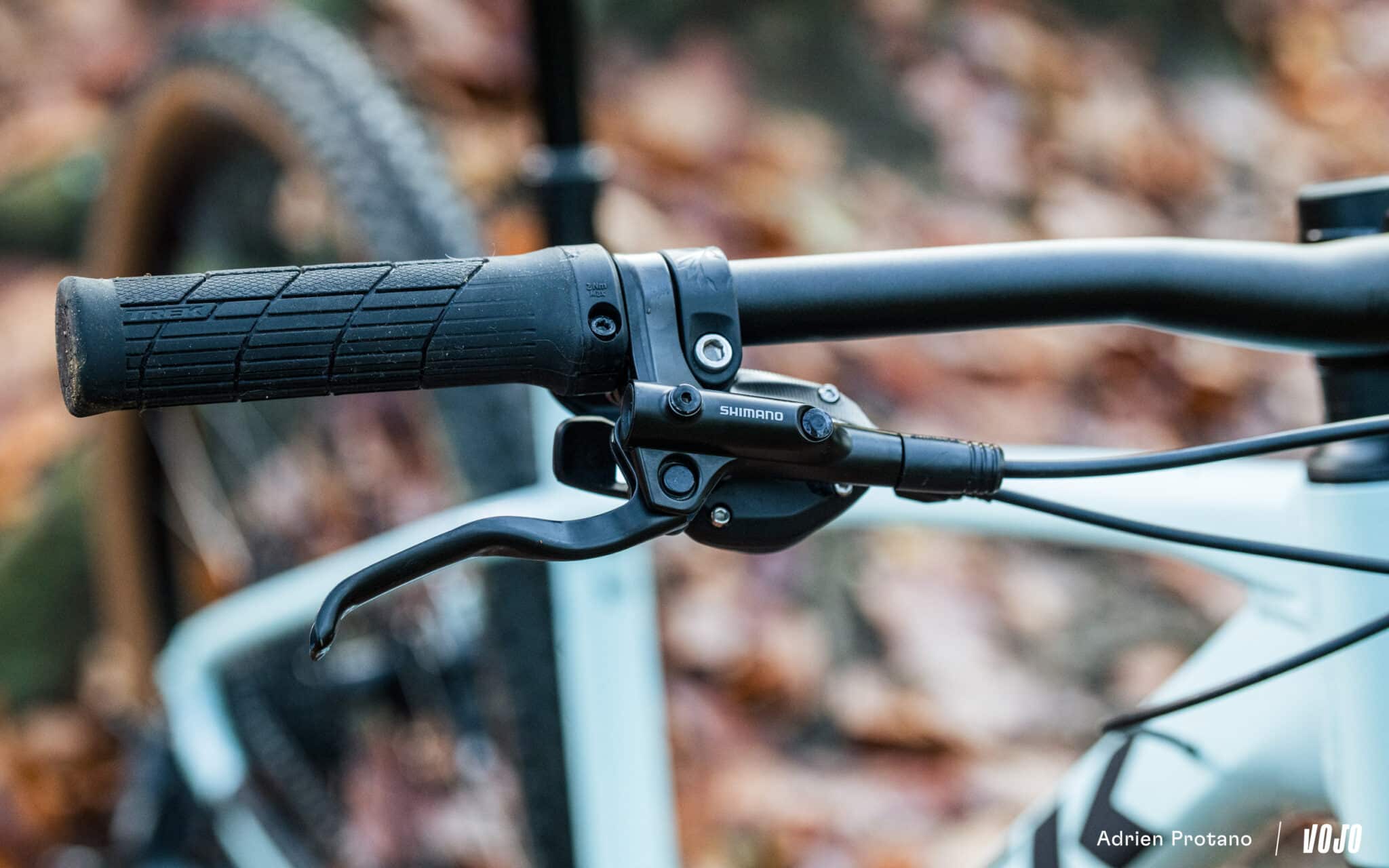 Het zadel zit best comfortabel. Geen pijn of ongemak. Alleen af en toe een vreemd gevoel: het gevoel dat het zadel scheef stond, vooral na het gebruik van de dropper zadelpen. Toch beweegt het zadel niet! Is het omdat onze testfiets al vaak gebruikt is en er speling zit op de dropper? De handvatten zitten ook comfortabel.