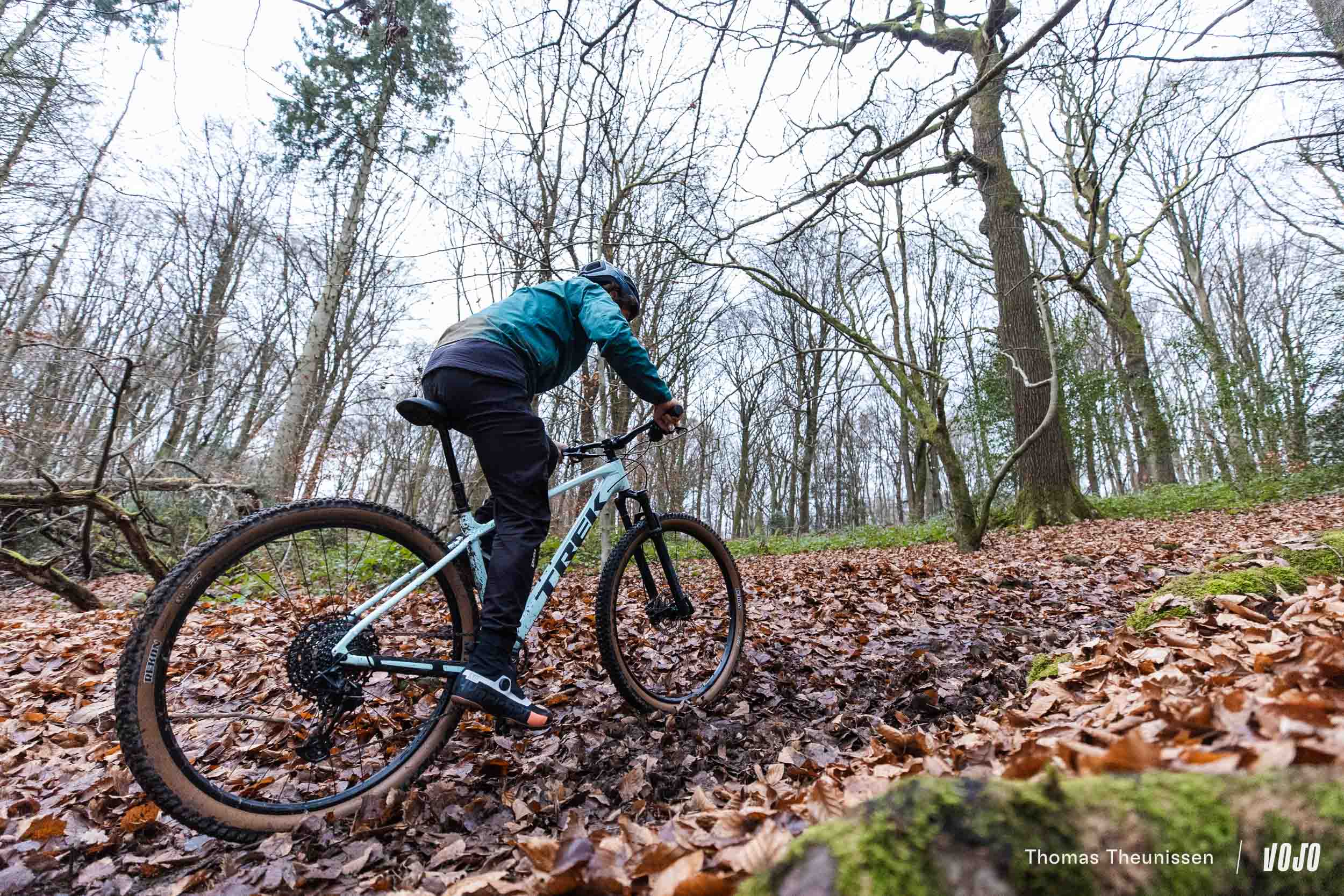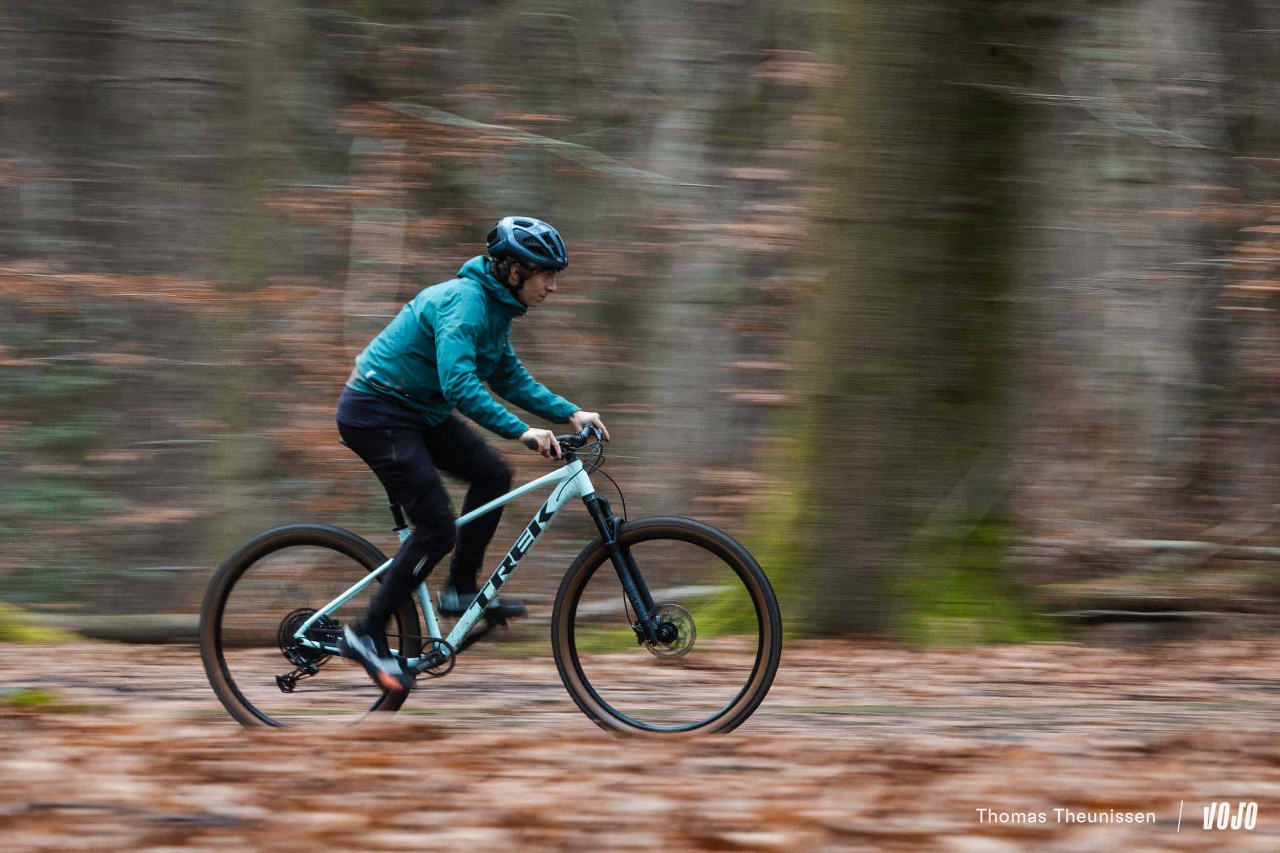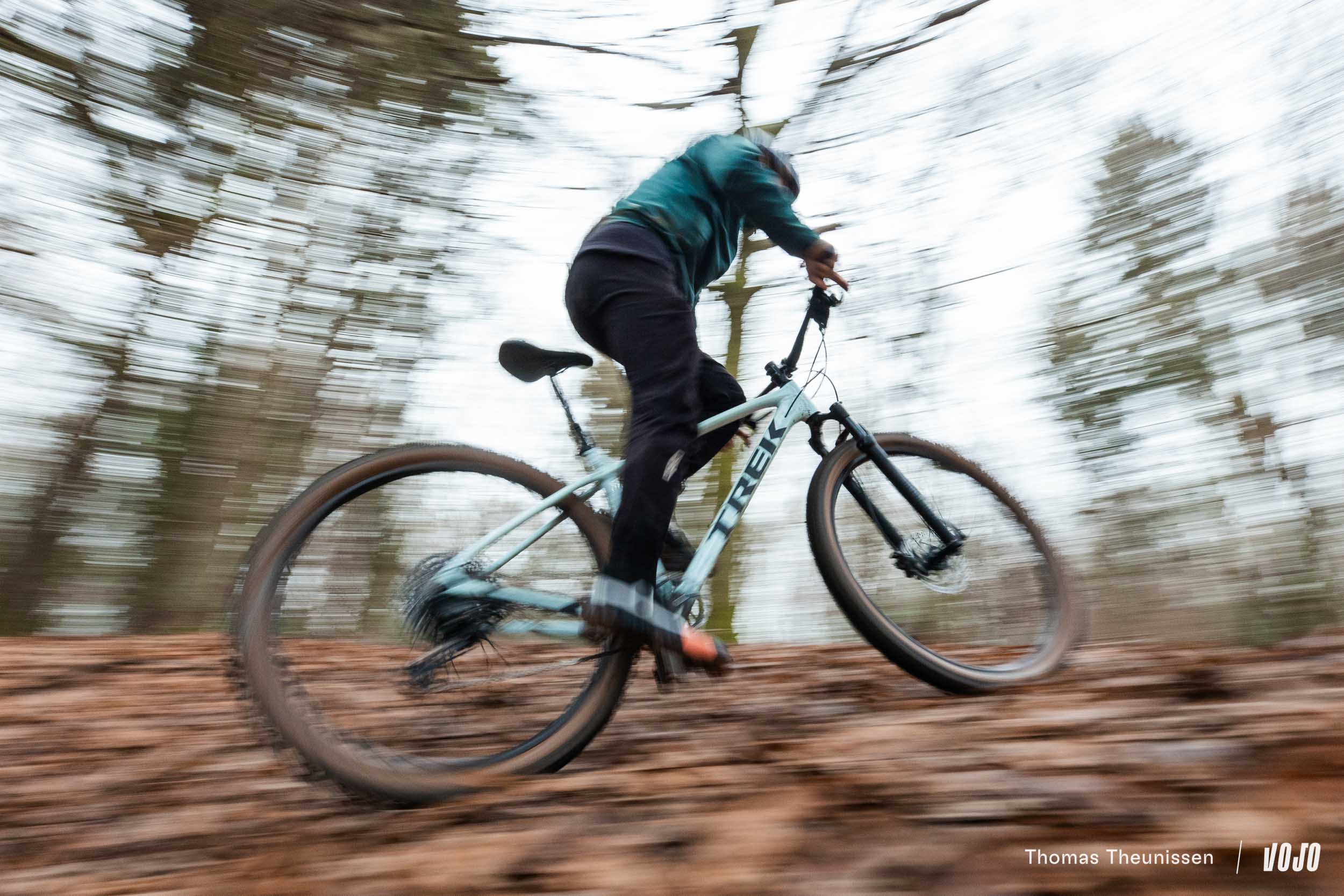 We hebben de Trek Marlin de voorbije weken voornamelijk getest op droog, licht vochtig terrein. We reden slechts één echt modderige rit. We hadden het eerder over de ‘ouderwetse’ geometrie , maar het moet gezegd dat de zitpositie best prima was. Niet te rechtop, niet te ver naar voren, maar vrij neutraal, wat goed past bij een type fiets als de Marlin. Hoewel de stuurpen in het begin erg kort leek, raakten we er snel aan gewend.