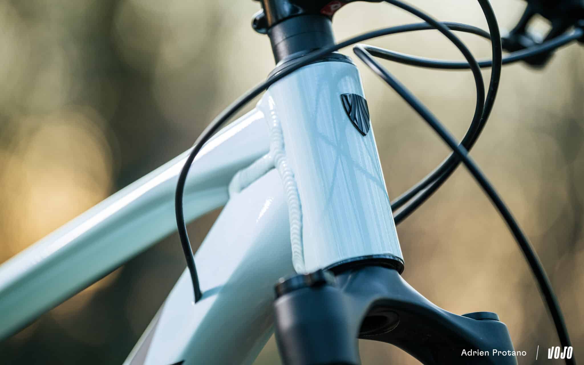 De balhoofdhoek is niet te steil, waardoor de fiets goed stuurt in bochten. Geen onaangename verrassingen, geen onderstuur, misschien een beetje minder levendigheid, maar aangezien de fiets niet echt race-georiënteerd is, is dat laatste ook geen groot gemis.