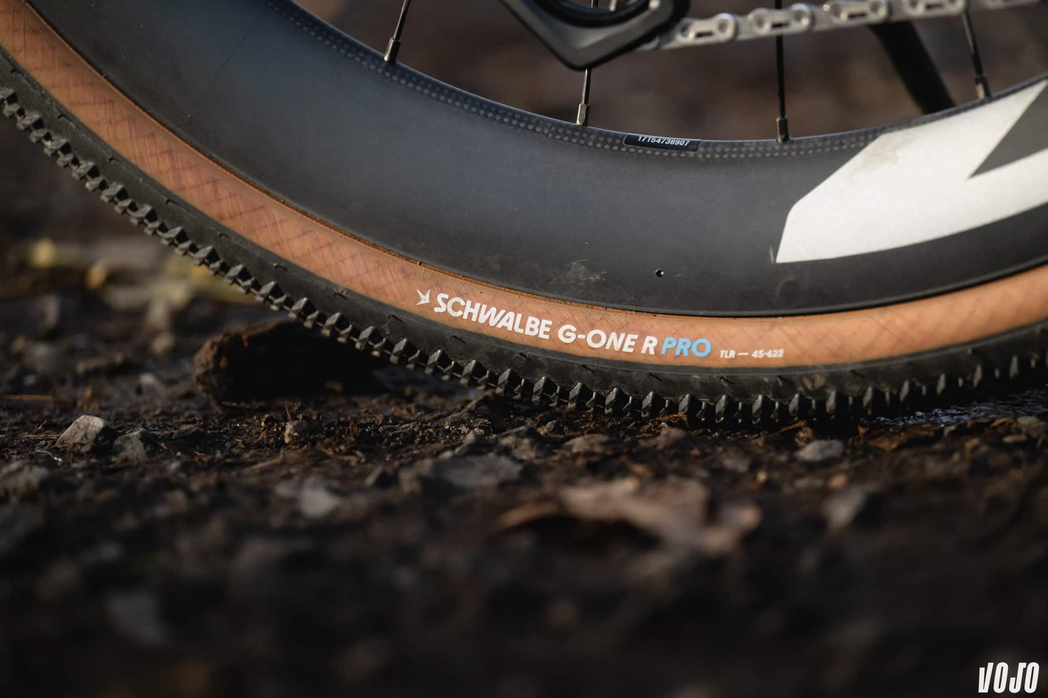 Het moeilijk op snelheid komen, wordt gecompenseerd door uitstekende banden. De Schwalbe G-One R Pro banden hebben vervormingseigenschappen die zorgen voor een uitstekende grip met behoud van zeer goede roleigenschappen. In een breedte van 45 mm passen ze perfect bij de wielen. Brede banden worden steeds vaker gebruikt op gravelbikes, zelfs de meest sportieve. Ze bieden ook offroad bijzonder veel vertrouwen.