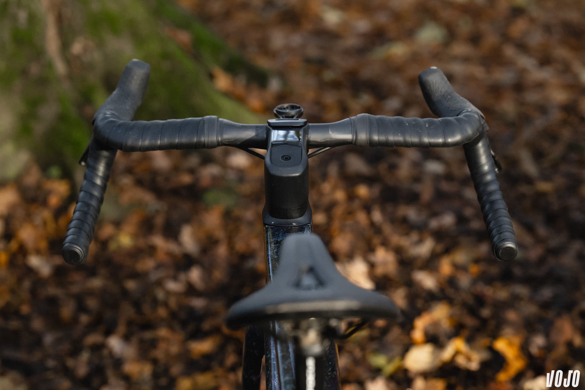 De cockpit is behoorlijk comfortabel, maar het stuur dat we hebben getest is niet het standaardmodel dat op de fietsen wordt geleverd. In de winkel staat de fiets met een Zipp Service Course SL 70 XPLR-stuur.