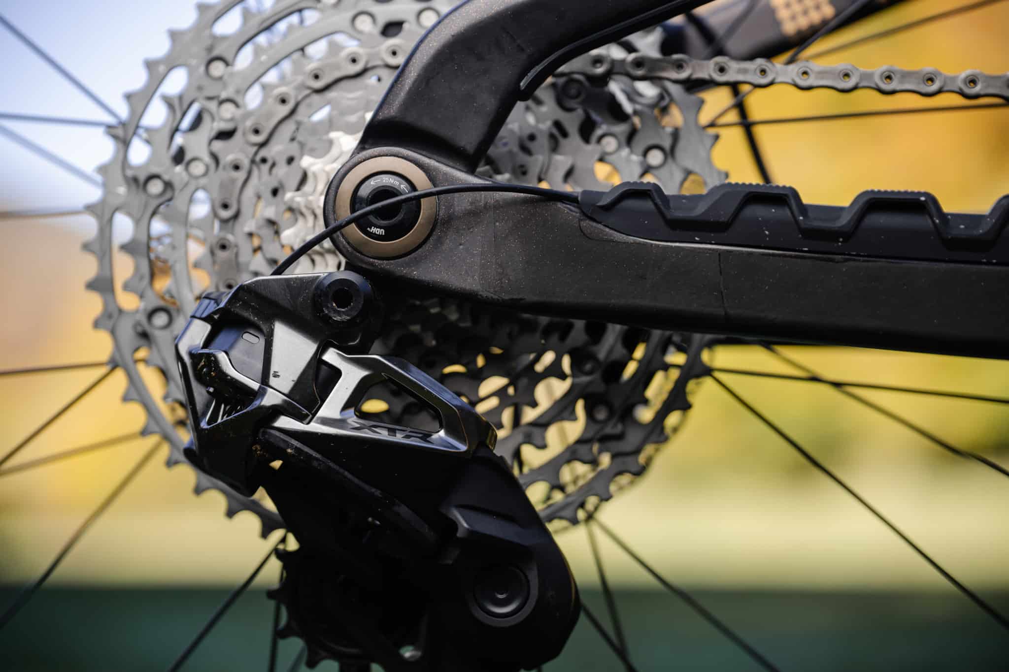 De Shimano Di2-derailleur, verstelbare zadelpen met afstandsbediening, motor en vering: al deze componenten zijn met elkaar verbonden en worden gevoed door de centrale batterij van de fiets.