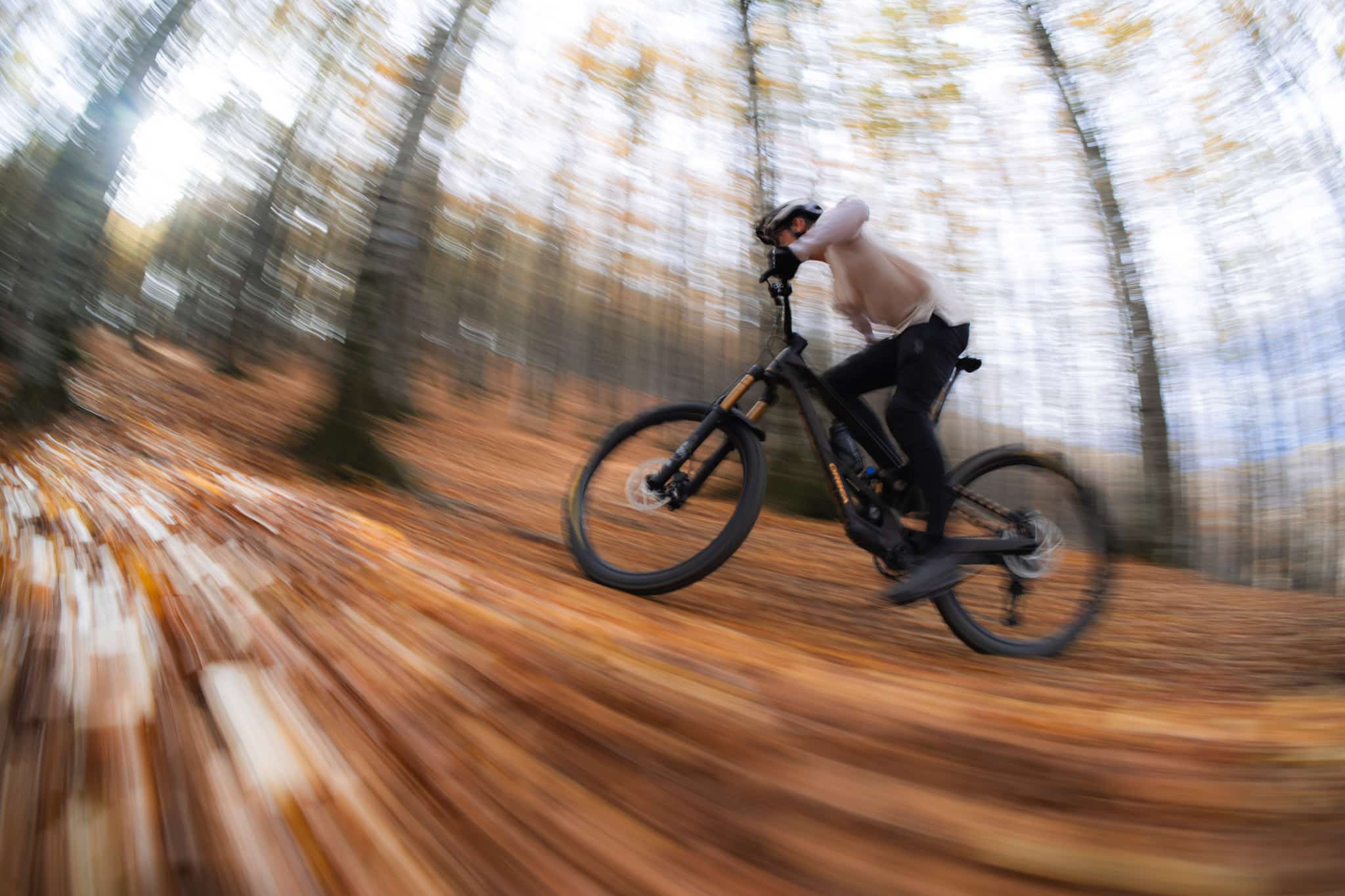 Laten we beginnen met ‘Range’, de meest gebalanceerde modus (hoewel alle modi via de speciale app aanpasbaar zijn). Bij een constant tempo krijg je lichte ondersteuning en voelt het alsof je een fantastische dag hebt, met frisse benen. Wanneer je technische stukken bereikt en meer van de motor vraagt, biedt de ondersteuning echt hulp. Je behoudt nog steeds meer controle over de fiets, die je nooit inhaalt, maar je ook niet meesleurt. Je behoudt een uitstekende grip, zonder uit te glijden. Met deze modus heeft Orbea zijn missie al volbracht: de motor overschrijdt nooit de eisen van de fietser en je ‘werkt’ en zweet zoals gewoonlijk. Je gaat alleen iets sneller en iets gemakkelijker wanneer dat nodig is.