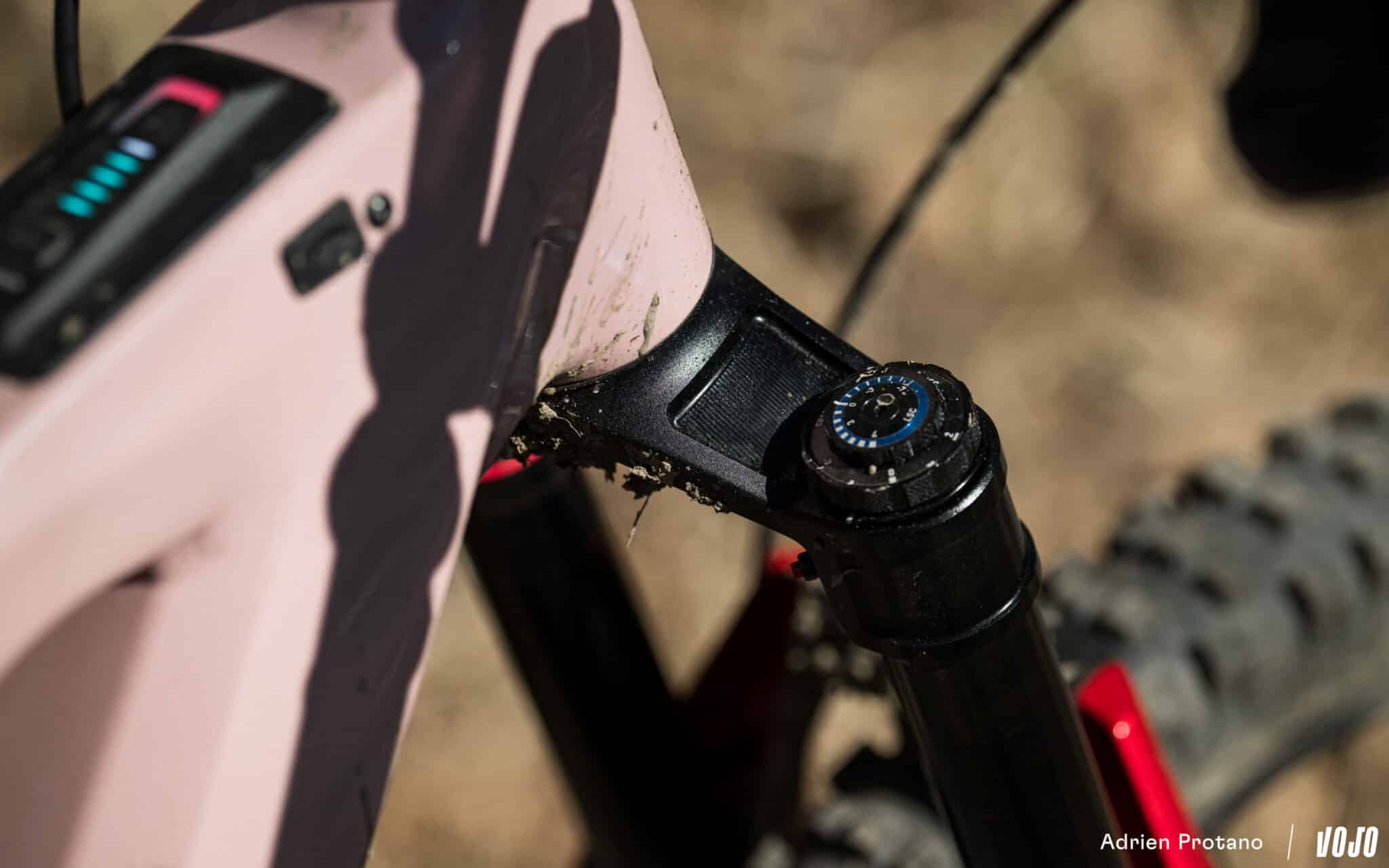 Het eerste punt dat we willen benadrukken, betreft de instellingen. Na de aanvankelijke verbazing over de aanzienlijke druk die nodig was (163 psi voor een e-bike met een rijder van 82 kg, vergeleken met 100 psi bij de vorige generatie van de Lyrik), waren we erg te spreken over de logica van de nieuwe compressie-afstelknoppen. Deze zijn veel duidelijker en gemakkelijker te begrijpen. Uiteindelijk vonden we, door de aanbevelingen van de fabrikant voor de druk en rebound te volgen en de compressie-afstelknoppen iets naar de negatieve kant te draaien, al snel een instelling die perfect bij ons paste.
