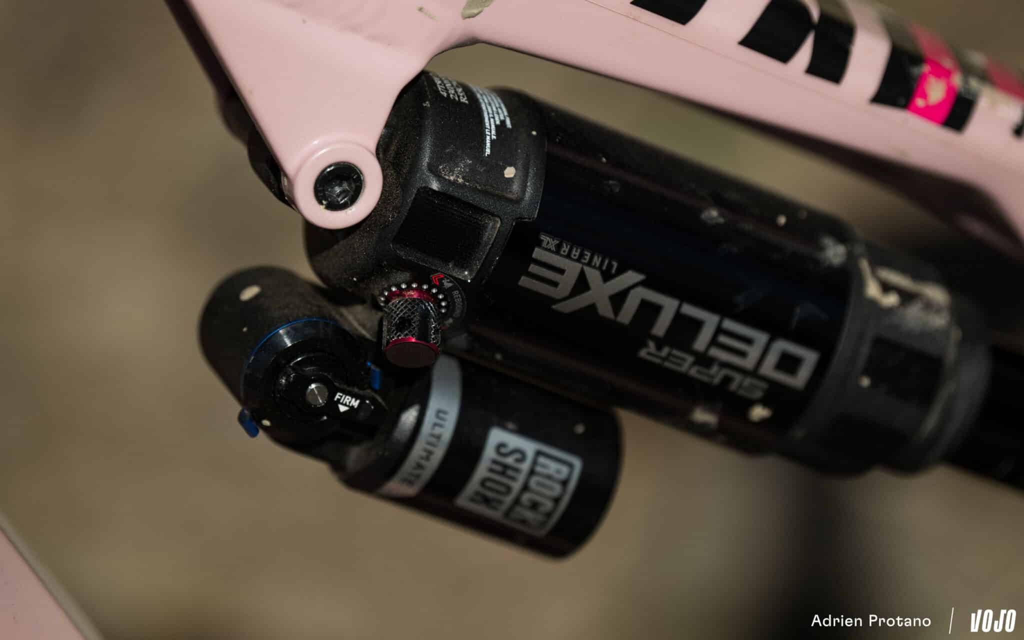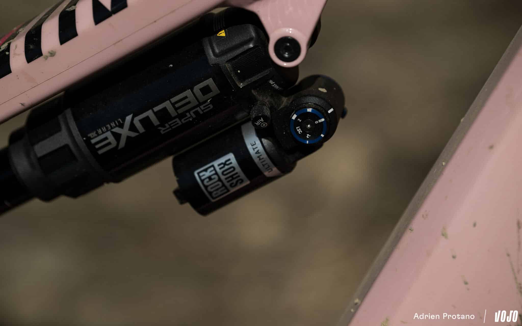 Vergeleken met de voorvork zijn de veranderingen op de demper minder merkbaar, maar het is duidelijk dat hij perfect samenwerkt met de voorkant. We hebben nog niet de kans gehad om terug te keren naar onze vorige schokdemper, noch naar de vorige generatie van de Deluxe, maar afgaande op Adriens feedback over de Vivid, zouden we een verschil kunnen merken en een iets minder samenhangend gevoel met de voorvork. Dat moet nog blijken.