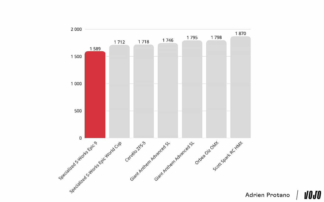 - Specialized S-Works Epic 9: 1589 gram