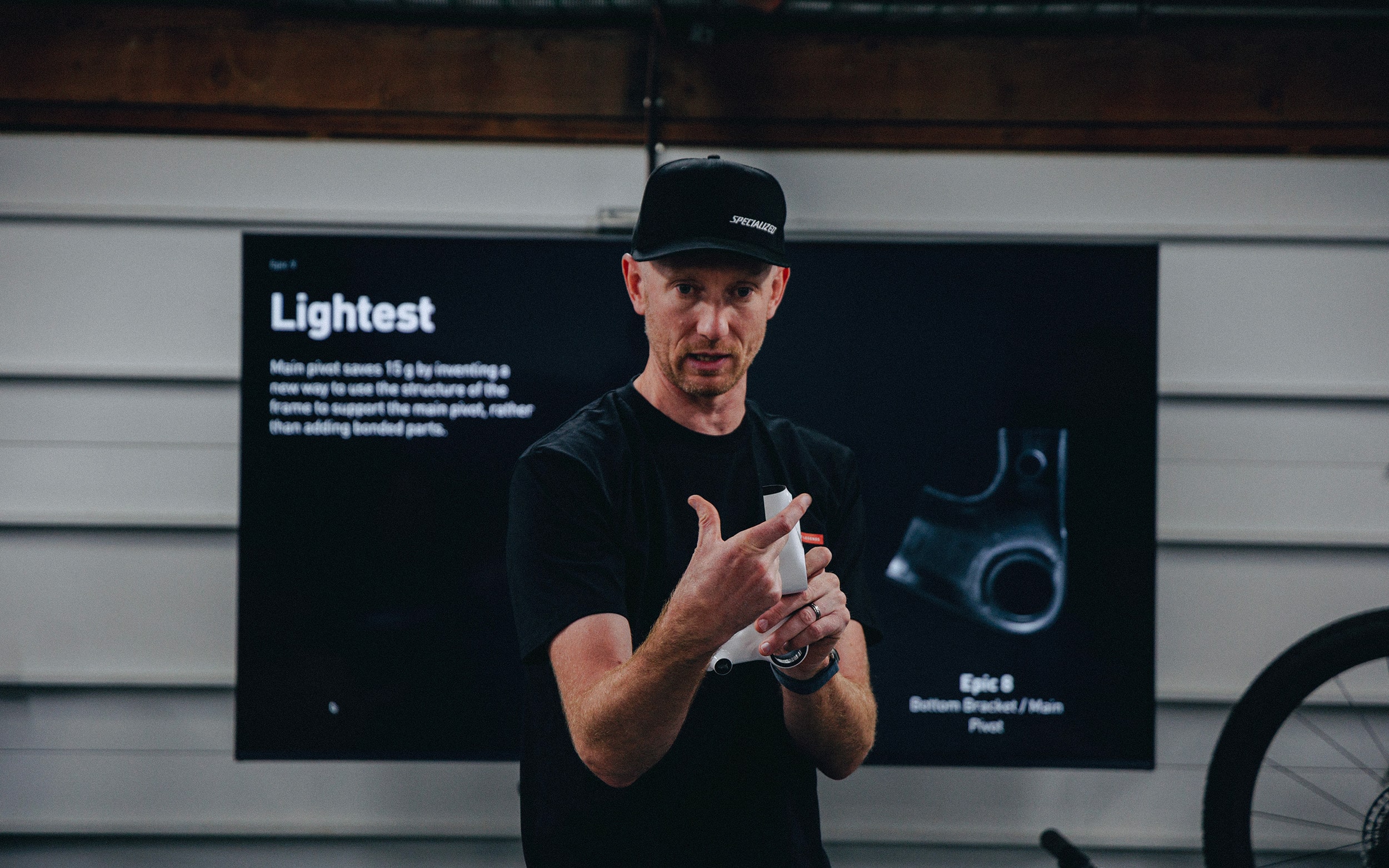 Om de kinematica van deze Epic 9 te ontwikkelen, heeft het merk onder meer een testmodel gecreëerd op basis van een Epic 8-frame, waarop ze de gewenste bevestigingspunten hebben aangebracht.