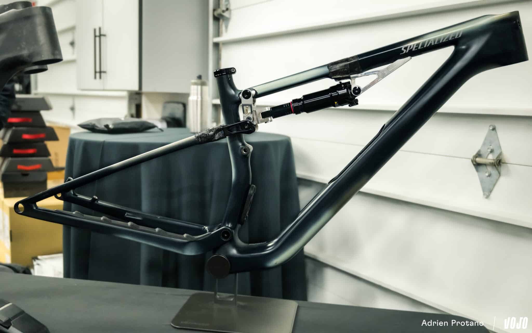 De andere ontwikkelingsas betreft de vering zelf! Net als bij bepaalde eerdere modellen (denk in het bijzonder aan de Genie-demper op de nieuwste generatie van de Levo en Stumpjumper), heeft Specialized zijn eigen interne veringsinstellingen ontwikkeld, dankzij een team dat zich binnen de R&D-afdeling specifiek hierop richt. “Uiteindelijk ontwikkelen we de veringen zoals een fabrikant van veringen dat doet”, grapt Chance Ferro, de verantwoordelijke voor het team achter de veringen.
