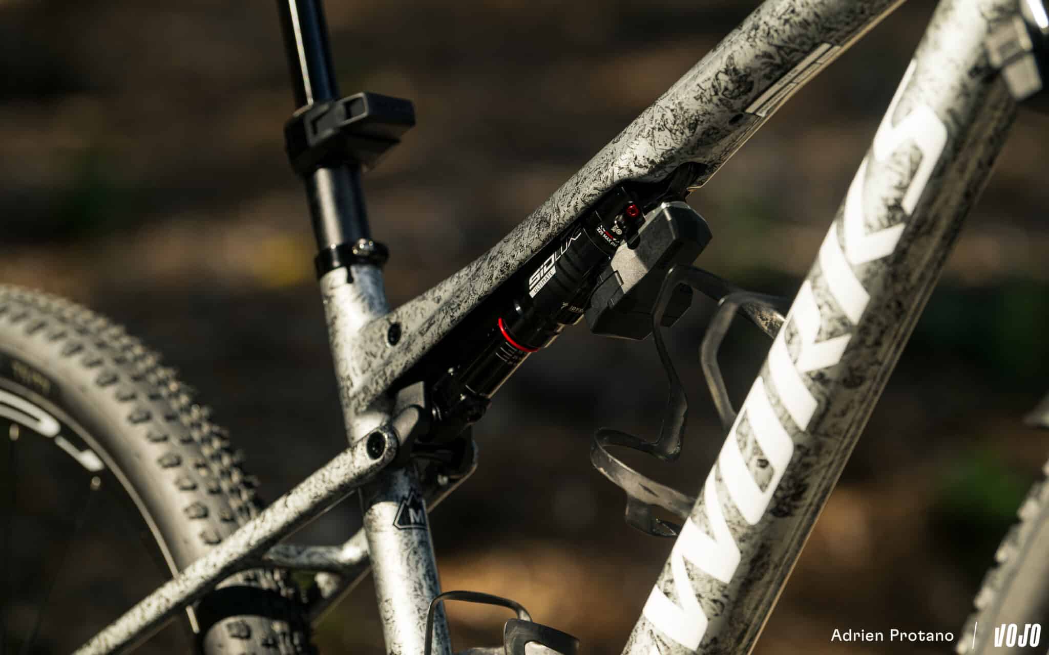 De eerste evolutie zit in de architectuur van het frame zelf, met de demper die parallel aan de bovenbuis is geplaatst en er bijna in verzonken ligt, wat doet denken aan de Epic World Cup. Er is echter geen sprake meer van een speciale demper zoals bij die World Cup; we stappen hier over op een klassiekere RockShox SID Luxe.