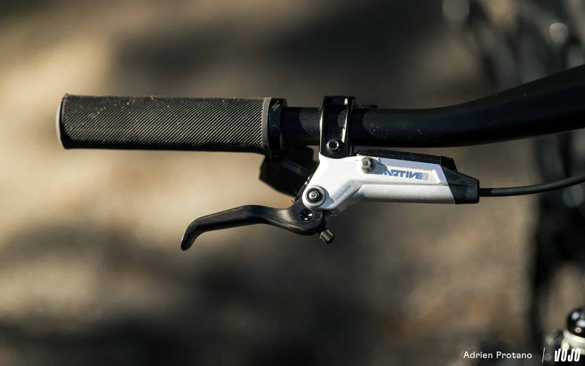 Tot stilstand komen doe je met een paar Sram Motive Ultimate 4-zuigerremmen, gecombineerd met een 180 mm remschijf aan de voorzijde en een schijf van 160 mm aan de achterzijde.