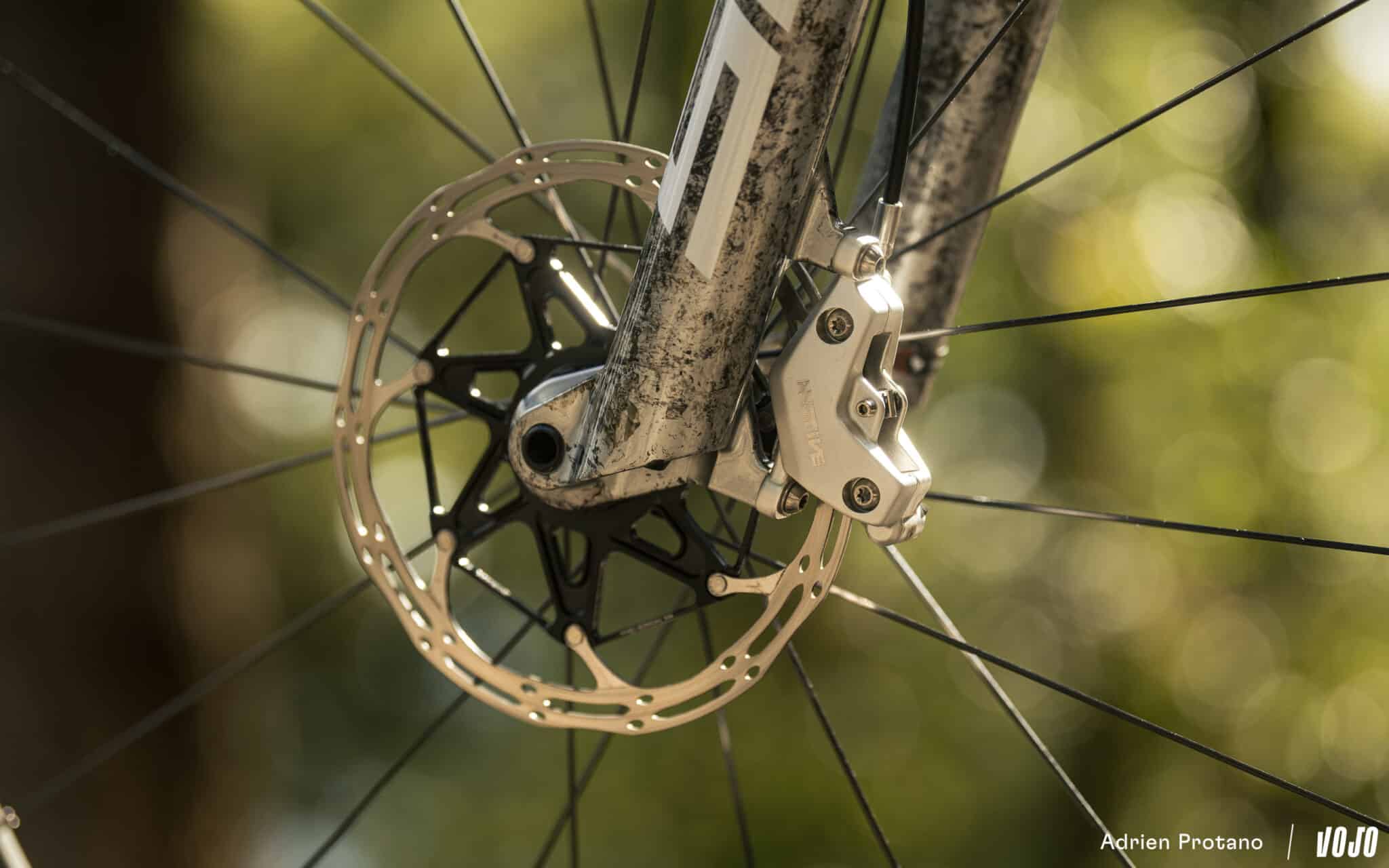 Bij de details zien we een specifieke kettinggeleider, ontwikkeld in samenwerking met MRP, die kan meedraaien bij een impact. Er werd ook veel aandacht besteed aan de lagers, inclusief een levenslange garantie voor de eerste eigenaar.