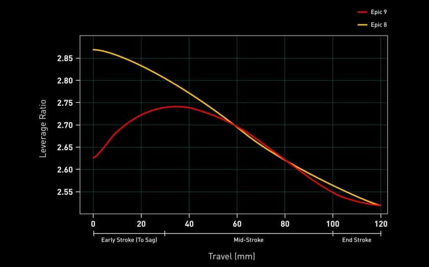 “We hebben de leverage ratio bij de SAG verlaagd om de trapefficiëntie te verbeteren, terwijl we de beproefde leverage ratio van de Epic 8 over de overige twee derde van de veerweg hebben behouden. Het doel is om meer ondersteuning te bieden bij het trappen en meer stabiliteit bij hoge snelheden. Ook hebben we de gevoeligheid verbeterd dankzij een vermindering van de wrijving met ongeveer 11%”, legt Chance Ferro, de verantwoordelijke voor de veringen bij het merk, uit.