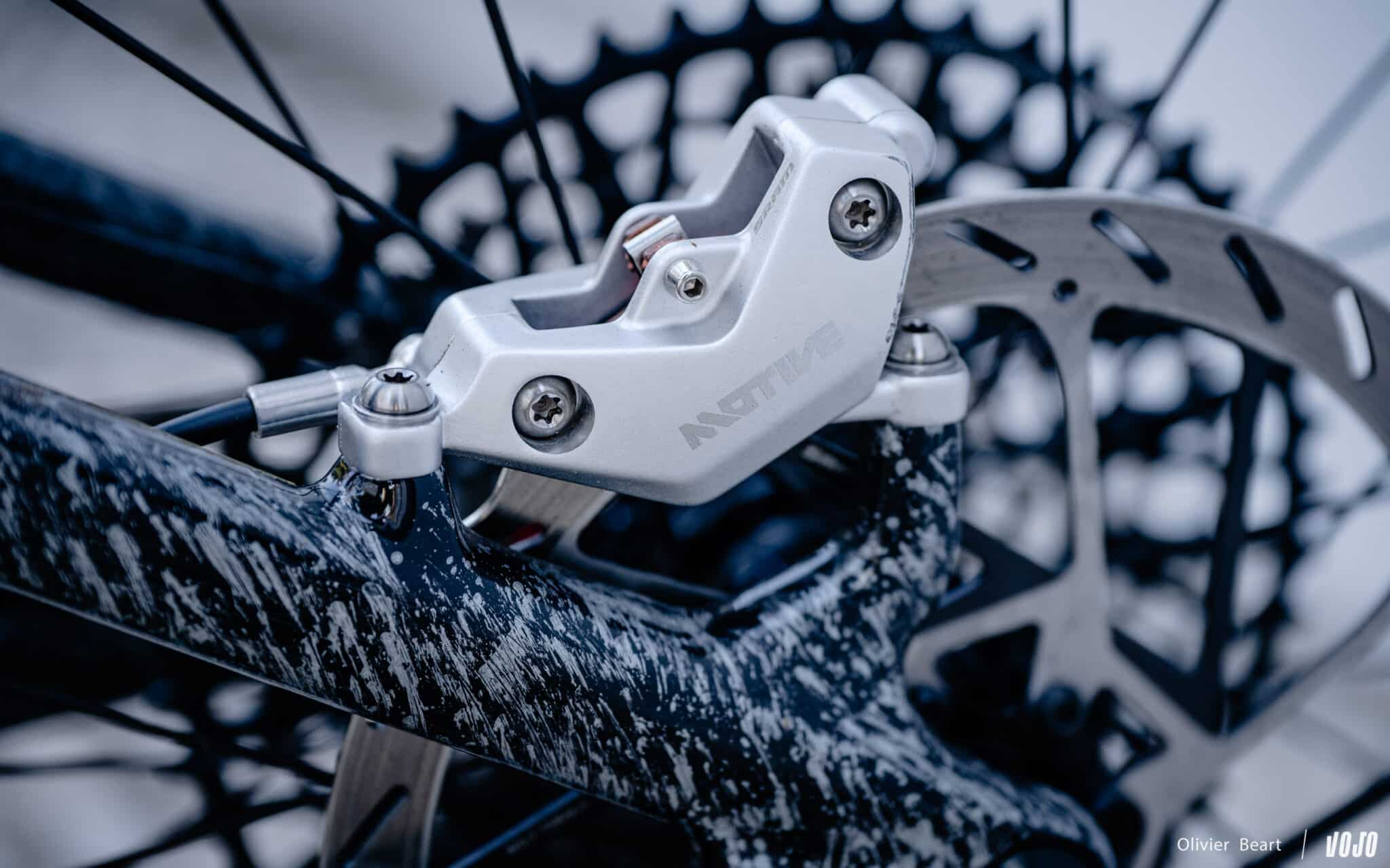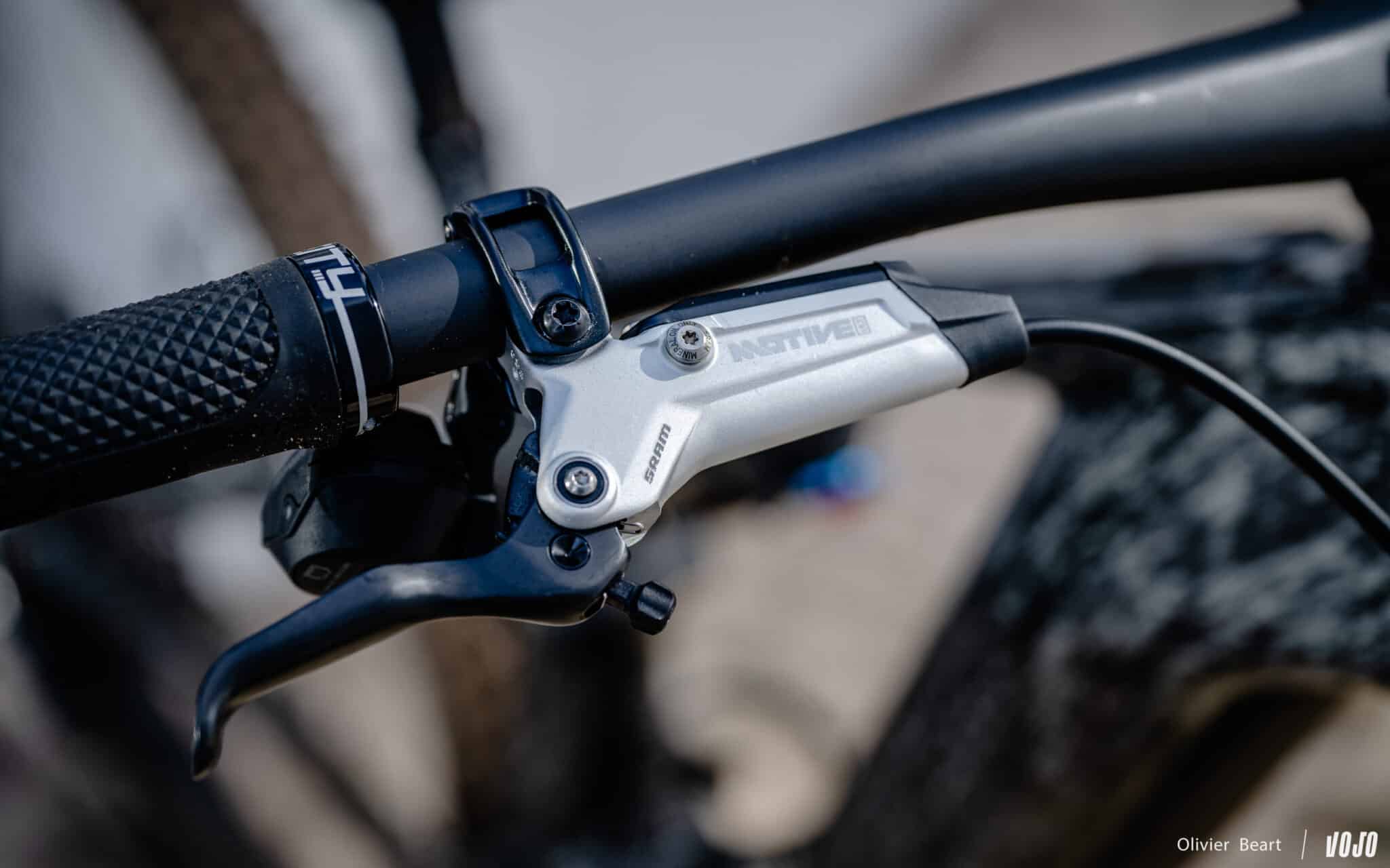 Bij de remmen zien we dat de Maven vervangen is door de Sram Motive. Hoewel ze in XC worden gebruikt, hebben ze remklauwen met vier zuigers. Onze tests hebben aangetoond dat ze perfect geschikt zijn voor dit type fiets, zowel qua remkracht als duurzaamheid, zeker met remschijven met een diameter van 200 mm.