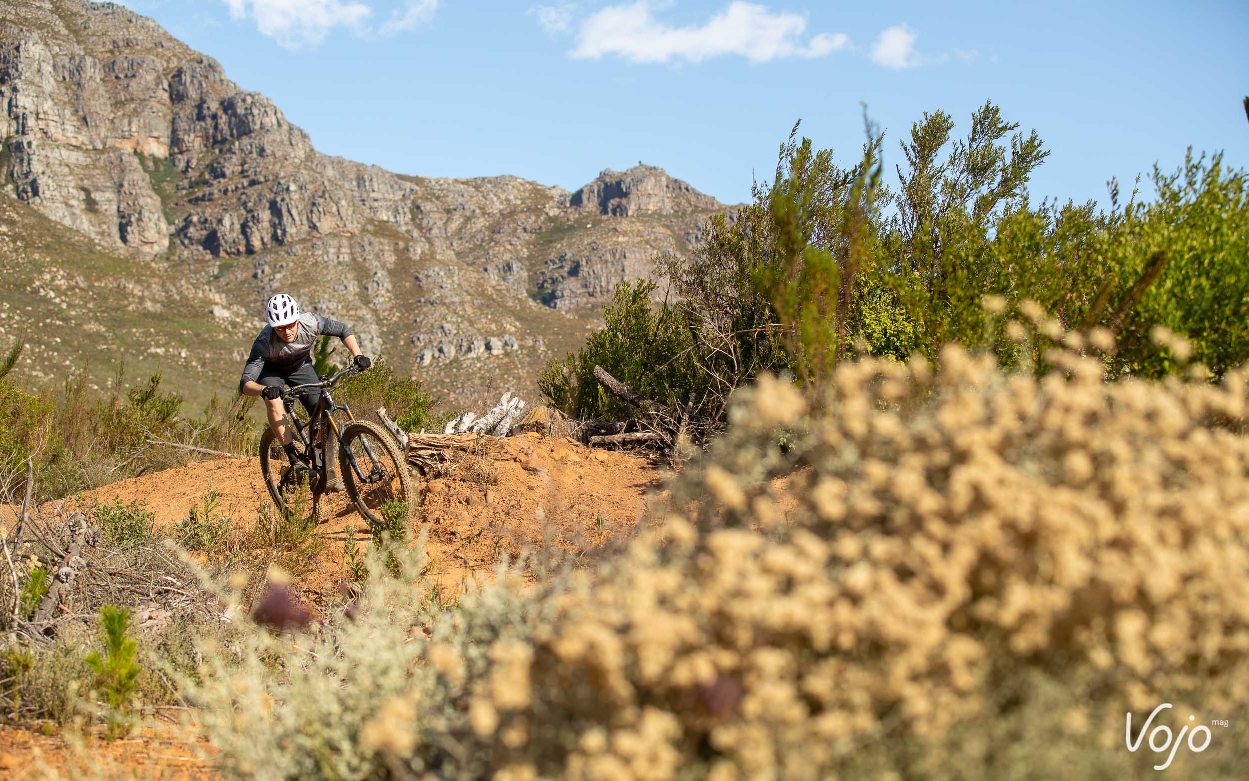 Om je een idee te geven, drie jaar geleden reed ik net voor de Cape Epic al een keertje op de trails van Stellenbosch. Ik was toen in topvorm en reed met een fiets van amper 10 kilogram. Met meer kilo’s en minder training kreeg ik aan het stuur van de Levo SL tijdens het klimmen dezelfde gewaarwordingen. Waar ik bergop de indruk heb met een goede xc-racer onderweg te zijn, heb ik bergaf het gevoel dat ik deze inruil voor een all-mountain machine. En het is die combinatie van het beste uit twee werelden die in mijn ogen deze Specialized Levo SL zo uniek maakt.