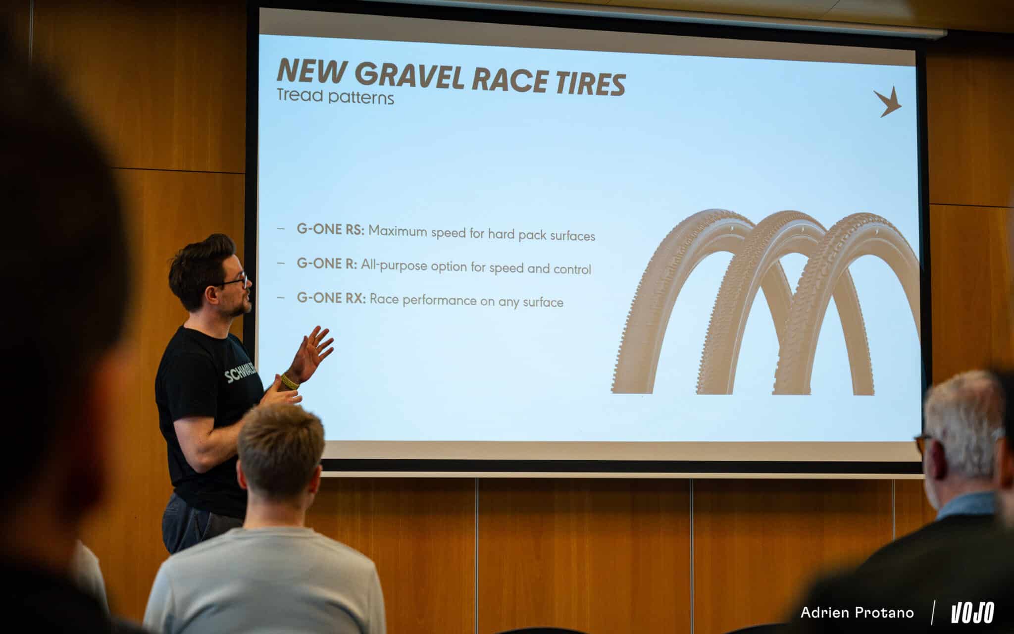 Het merk greep tevens de gelegenheid aan om een nieuwe reeks gravelbanden te presenteren. De logica is simpel: de recent gelanceerde G-One RS, R en RX-reeks (zie Test | De Schwalbe G-One R Pro & Overland Pro gravelbanden op de testbank) zijn nu verkrijgbaar in een tweede, toegankelijkere variant dan de eerder op de markt gebrachte Pro-reeks.