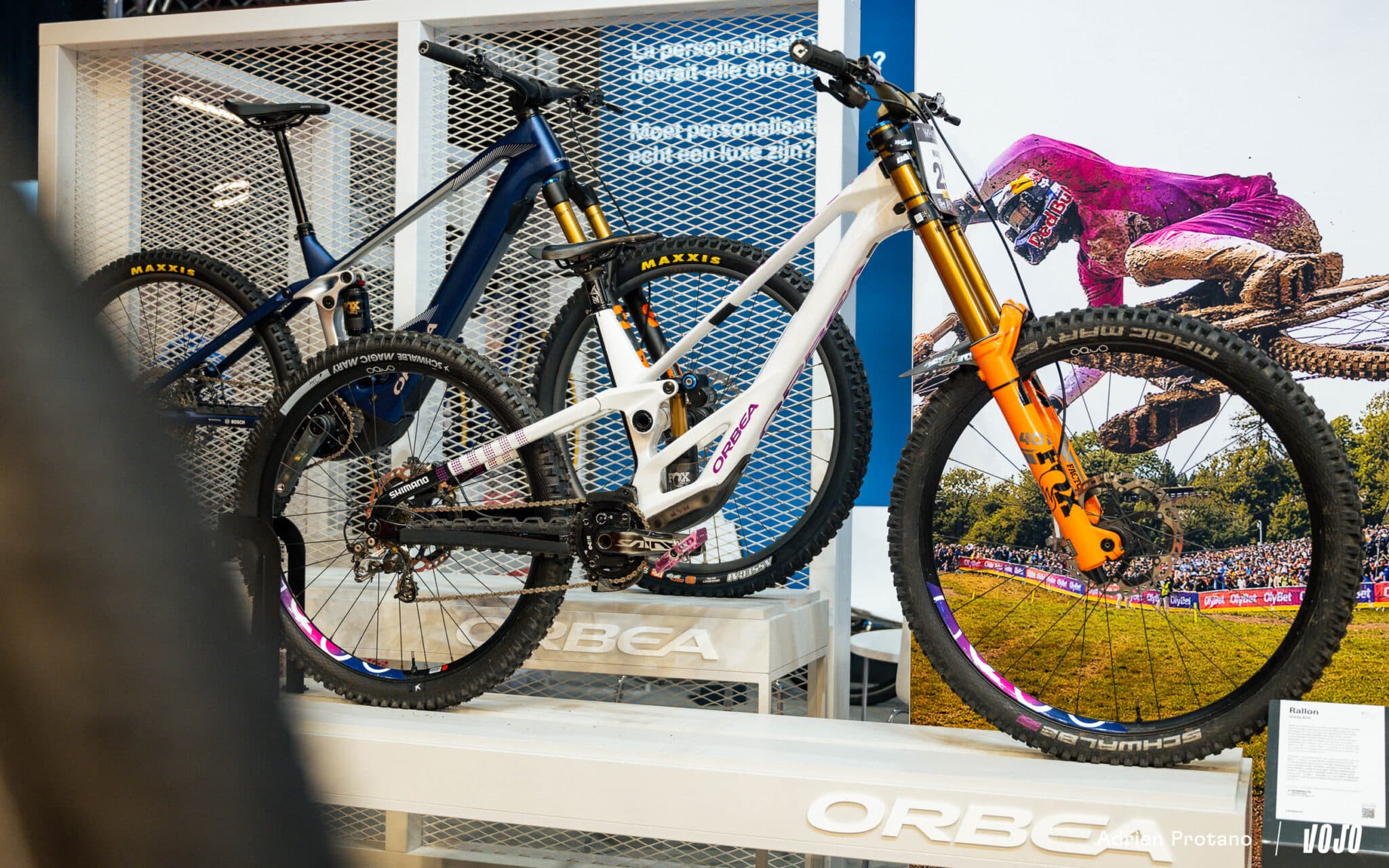 Een fietsbeurs biedt ook de mogelijkheid om de fietsen van internationaal gerenommeerde renners uit onze regio in de kijker te zetten. Bij Orbea hadden ze de Oiz van Pierre de Froidmont uitgestald …