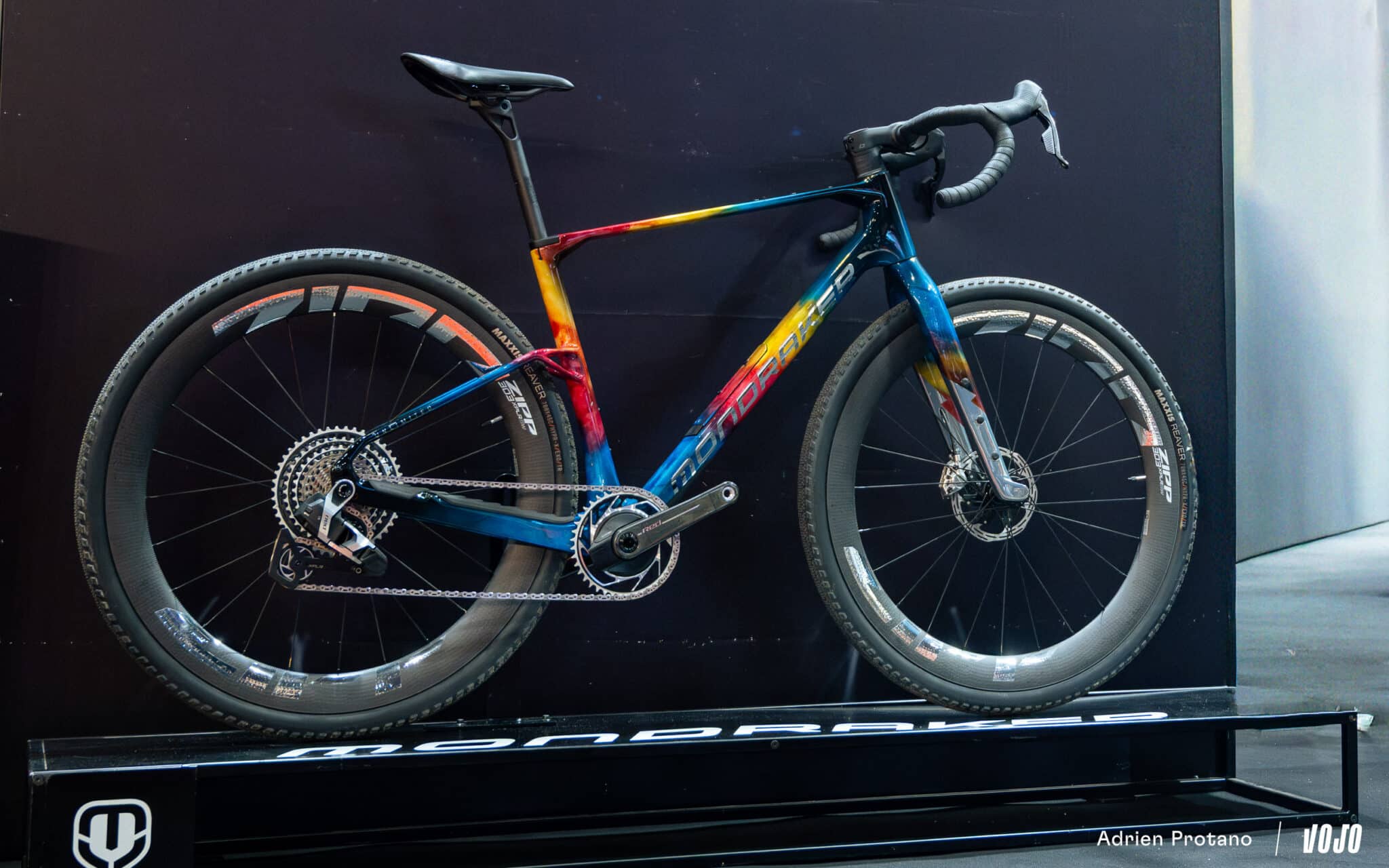 Als je van custom kleuren houdt, vind je bij Mondraker zeker wat je zoekt: deze Arid-gravelbike in een speciale ‘Velofollies’-uitvoering stond tentoongesteld naast de standaardmodellen.