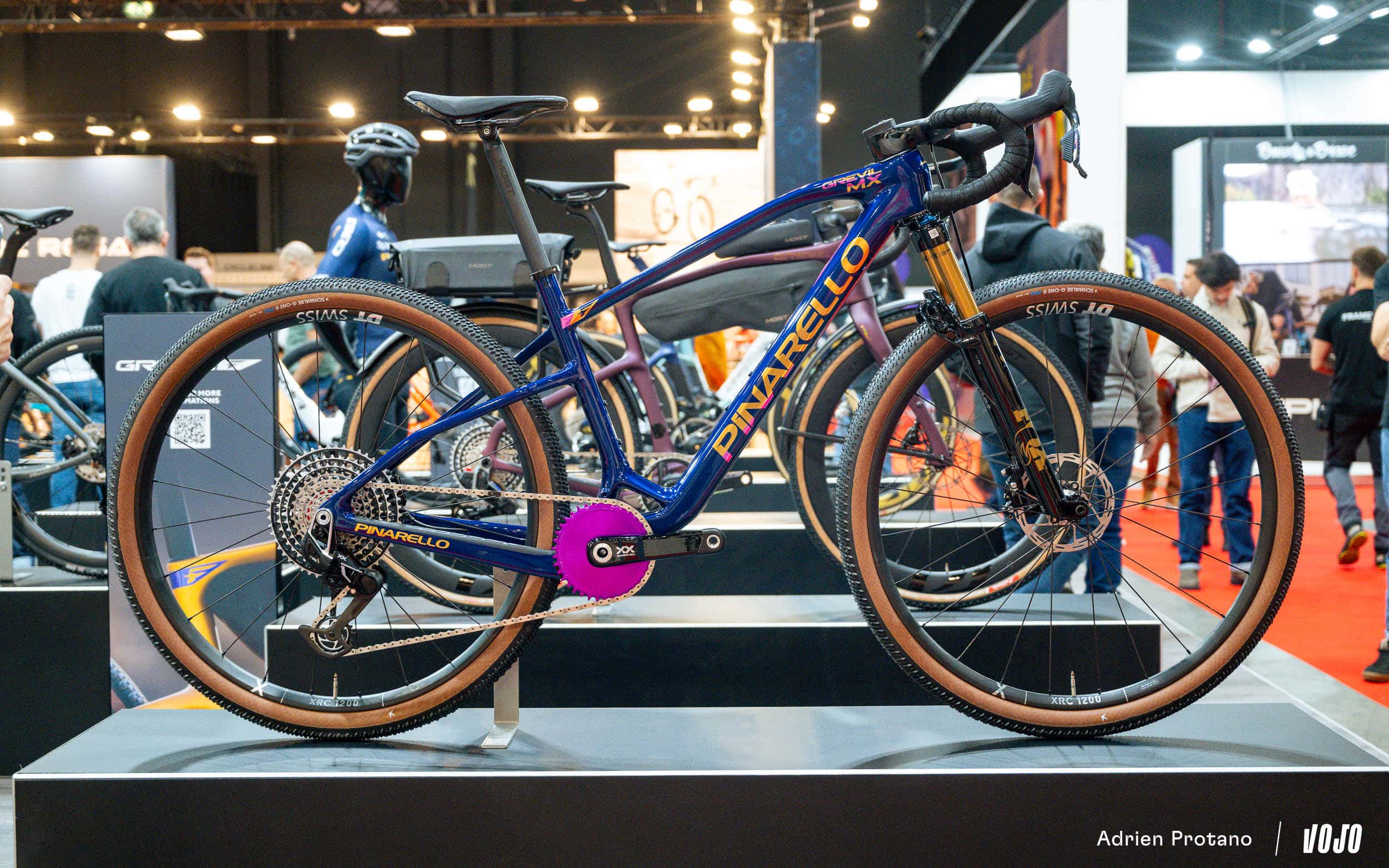 Dit hybride gravel/XC-model van Pinarello, de Grevil MX, was een van de belangrijkste attracties van Velofollies. We hebben hem al eerder vernoemd: Nieuw | Pinarello Grevil MX: wanneer een gravelbike een XC-mountainbike als basis neemt.