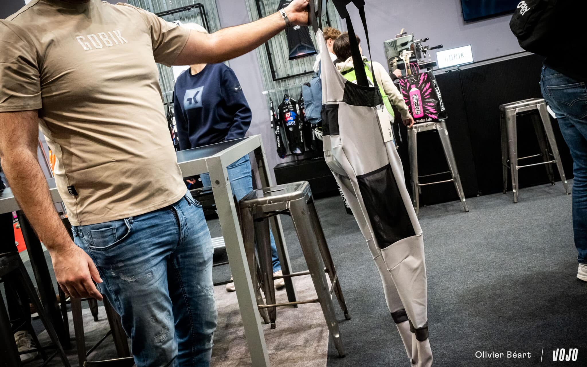 Laatste stop: de stand van Gobik waar we de nieuwe cargo-fietsbroek met bretellen, die vlak voor de opening van de beurs werd onthuld, voor het eerst mochten aanschouwen.